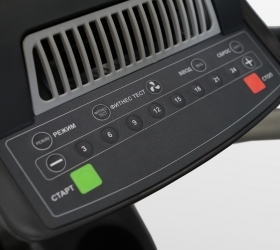 Тренировочный компьютер представлен дисплеем профессионального уровня. Многофункциональный LCD-дисплей с графической матрицей и голубой подсветкой. На экран компьютера выводятся все основные данные – время, скорость, дистанция, уровень нагрузки, калории, ватты, темп, фитнес тест, пульс и температура в помещении. В программный пакет входят 12 предустановленных программ, в которых используются различные виды тренировок. Помимо предустановленных программ, можно воспользоваться самостоятельно регулируемым ручным режимом, а также создать собственную программу в одном из 4-х пользовательских режимов. 4 пульсозависимые программы отвечают за тренировку тех пользователей, которым важно контролировать верхние пределы частоты сердечного ритма. Плюс ко всему есть Ватт-программа.