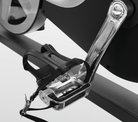 К числу других преимуществ BRONZE GYM S1000 PRO относятся быстро настраиваемые компенсаторы неровностей пола, износостойкие полиуретановые транспортировочные ролики и регулируемый держатель для бутылки. Многопозиционный руль с подлокотниками, полностью закрытый от влаги прорезиненной полиуретановой защитой, дает возможность принять спортивное "шоссейное" положение. Помимо всего прочего, здесь стоят премиальные педали типа JD-304V на стальных подшипниках. Они выполнены по технологии "Toe clip" (система рамок и ремешков на педали для крепления ноги) и, кроме того, подготовлены для использования специальной велообуви (необходим SPD переходник, приобретается отдельно).
