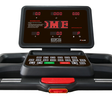 Тренировочный компьютер T1100M PRO представлен многофункциональным LED дисплеем с точечной матрицей профессионального уровня. Основной экран дополняют 6 небольших буквенно-цифровых информационных окон с красной подсветкой. Все клавиши и надписи на консоли русифицированы. На экран компьютера выводятся все основные данные – программный анимированный профиль, время, скорость, дистанция, расход калорий, шаги, пульс, угол наклона, текущая программа. В число самих программ входят 28 различных режимов, направленных на решение самого широкого спектра задач – от развития силы и выносливости до снижения веса и улучшения сердечно-сосудистой системы. Помимо предустановленных программ, можно воспользоваться самостоятельно регулируемым ручным режимом, а также создать собственный тренировочный профиль в одном из 3-ех пользовательских режимов. Есть здесь и 3 пульсозависимые программы. Для точного определения пульса и просто комфортной тренировки в компьютер встроен высокоточный беспроводной приемник (рекомендуется использовать телеметрический ремень-передатчик Polar T34).