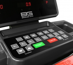 Беговая дорожка идеально подойдет для любителей высокоэффективных тренировок и профессиональных спортсменов. Чтобы удовлетворить самые высокие потребности, под капотом T1100M PRO расположен двигатель с мощностью 6 л.с. (в режиме пиковых нагрузок 9,2 л.с.). Оборудование способно развивать скорость до 25 км/ч, а угол наклона изменяется электрическим способом в 15 положениях. Для улучшения качества тренировочного процесса и его разнообразия на T1100M PRO установлено ортопедическое полотно профессионального класса (толщина 2,8 мм) с огромной беговой зоной размером 163*60 см. Для сокращения нагрузки на суставы дорожка оснащена амортизационной системой профессионального класса на базе эластомеров и подушек, расположенных по периметру полотна. Для удобства подъема на беговую дорожку предусмотрена специальная ступенька.
