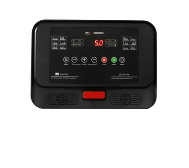 У модели CARBON Т320 есть 2 основных и 2 дополнительных компенсатора неровностей пола, за счет чего тренажер легко привести в нужное положение. Перемещение оборудования происходит за счет 2-ух транспортировочных роликов. Все показания тренировочного процесса размещены на ярком буквенно-цифровом LCD-дисплее. Данные видно при любом освещении. В памяти консоли содержится 12 встроенных программ, в которых используются различные виды тренировок. На консоли есть удобные быстрые клавиши контроля скорости бегового полотна, а также старта и окончания тренировки. Приятной опцией является подставка под планшет, с помощью которой можно разнообразить однотипные тренировки за просмотром фильма или сериала.