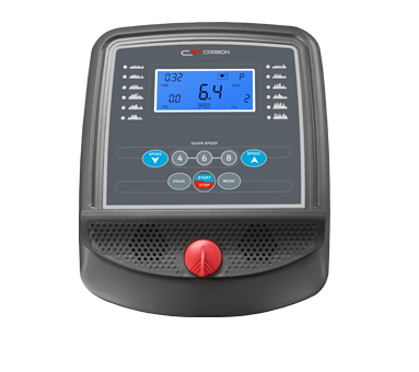 Программный функционал включает в себя 12 разнонаправленных тренировочных профилей и самостоятельно регулируемый ручной режим. Голубой LСD дисплей с диагональю 3.2 дюйма (8.2 см.) выводит на экран основные параметры тренировки: время, скорость, дистанцию, калории и пульс. Сенсорные датчики пульса расположены на поручнях тренажера.