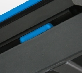 Дисплей с голубой подсветкой диагональю 4,9 дюйма отображает все показатели тренировки. В компьютер предустановлено 12 программ и регулируемый ручной режим. За счет встроенных в поручни сенсорных датчиков вы всегда сможет отслеживать свой пульс. Рядом с датчиками находятся кнопки управления скоростью и углом наклона бегового полотна, это очень удобная функция, которая представлена далеко не во всех дорожках, позволит вам с легкостью и удобством менять параметры тренировки во время бега.
