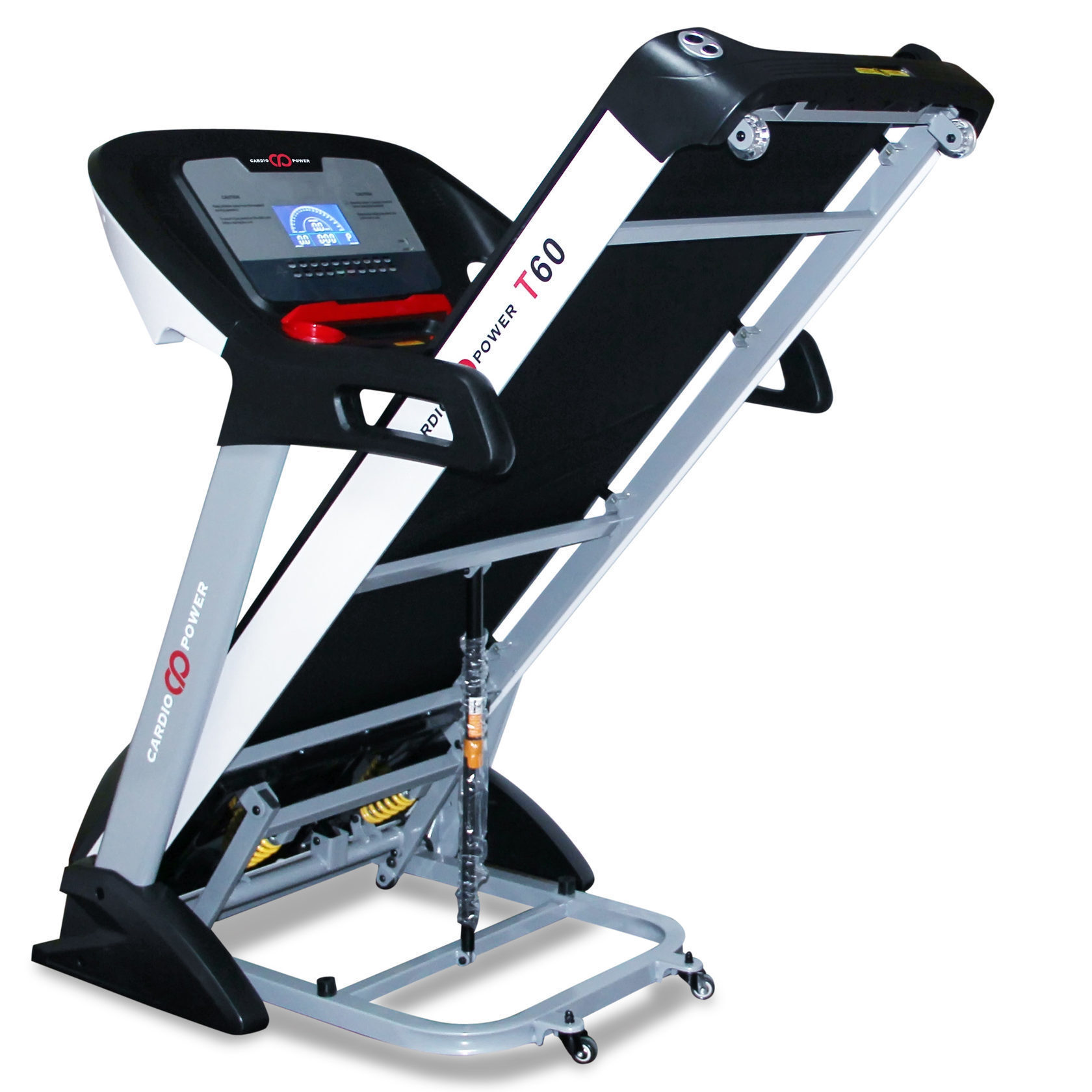 Беговая дорожка CardioPower T60 – отличный домашний кардиотренажер с расширенным функционалом. В дорожке есть все современные опции, которые сделают ваши тренировки разнообразными и эффективными. Для хранения полотно дорожки поднимается горизонтально за пару секунд, благодаря газовым доводчикам.