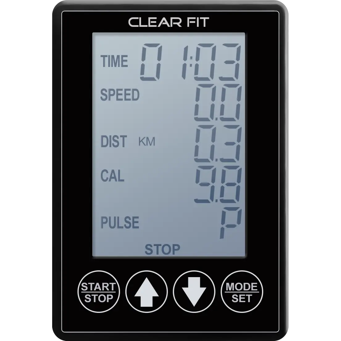 Компьютер тренировки выводит на дисплей основные параметры — время тренировки, дистанцию, скорость и количество потраченных калорий.