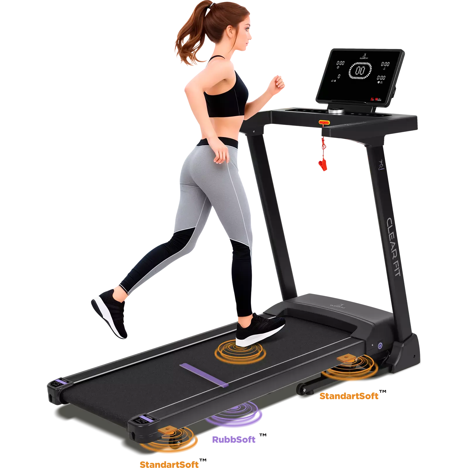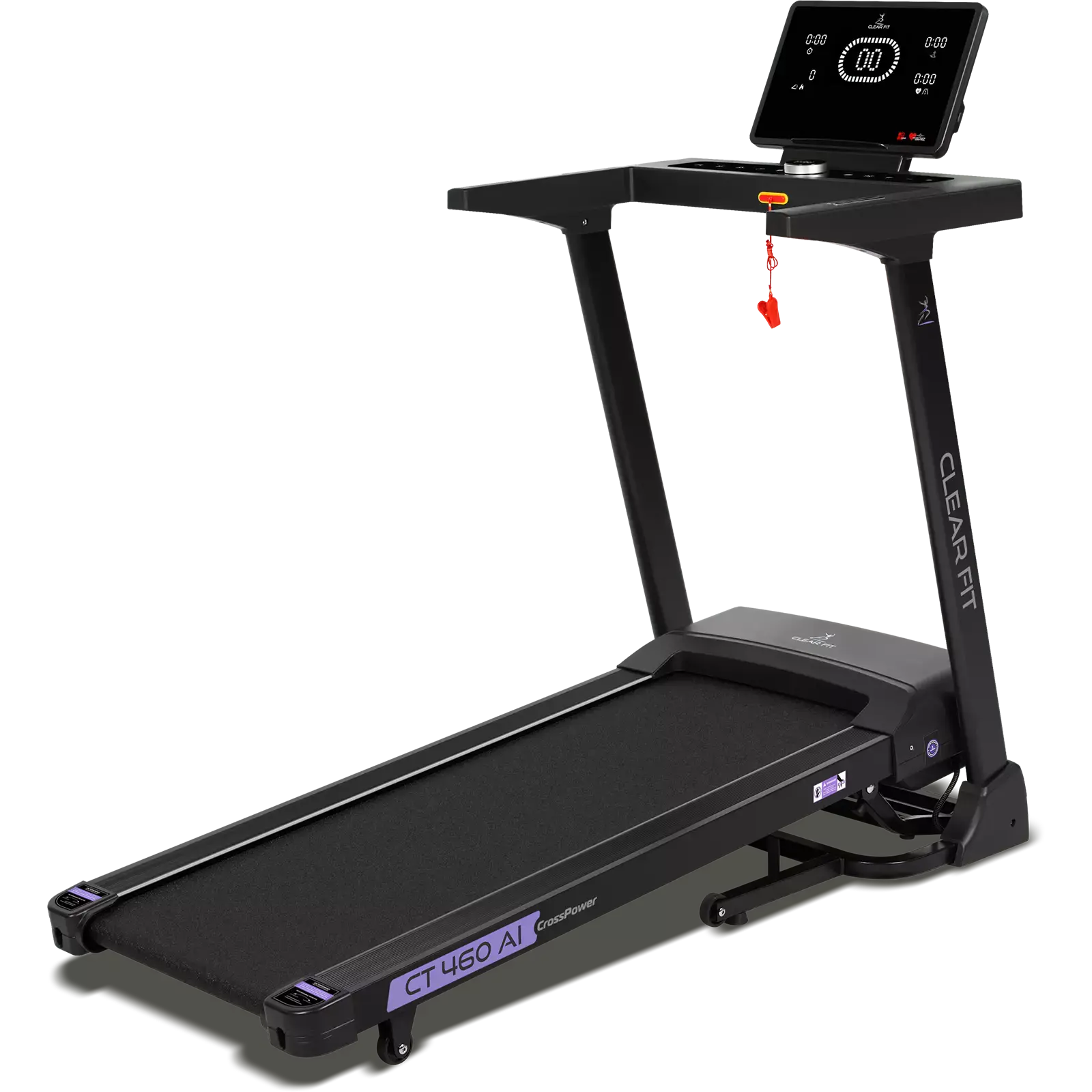 Беговая дорожка для дома Clear Fit серия CrossPower модель CT 460 AI. Оптимальный выбор для комфортных домашних тренировок бегом и ходьбой: просторное полотно 450 х 1200 мм, электрическое изменение угла наклона 15 уровней, мощный двигатель и качественная амортизация. Надежный, бесшумный двигатель беговых дорожек серии CrossPower развивает скорость в диапазоне от 0.8 км/ч до 14 км/ч, плавное изменение и стабильное движение на всех оборотах. Прочная дека и усиленная конструкция рассчитаны для пользователей до 140 кг. Двойная система амортизации по периметру от ударной нагрузки для суставов и позвоночника обеспечивает комфортные безопасные ходьбу и бег, современная система амортизации подходит для любого возраста.