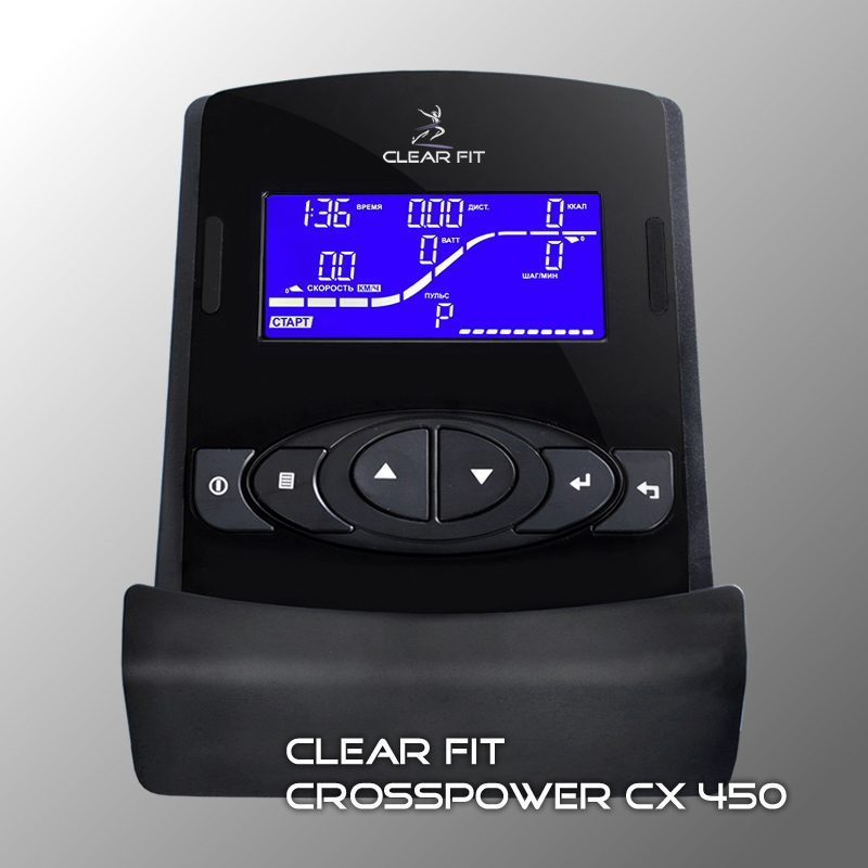 CX 450 серии CrossPower оснащен подъемным механизмом, что позволяет менять угол наклона трека, это увеличивает эффективность и функциональность тренировок, позволяет тренировать максимальную группу мышц и фокусировать нагрузку на проблемных зонах. Эргономика конструкции и параметры шага: высота 13,5 - 15 см, длина 51 см, малый Q-фактор 8.5 см, обеспечивают естественную биомеханику и эффективную траекторию движения. Что позволяет качественно проработать основные группы мышц без лишней нагрузки на суставы и позвоночник. 5 уровней наклона рампы с легкой системой изменения повышают нагрузку, позволяют скорректировать направление тренировок и повышают разнообразие. Идеальный вариант как для снижения веса и тренировок высокой интенсивности, так и для восстановления и тренировки кардиосистемы. Благодаря продуманной эргономики педально-рычажного механизма, на данной модели нет ограничения по росту и возрасту пользователя. Надежная рама и прочная конструкция привода рассчитаны на максимальный вес пользователя 135 кг.