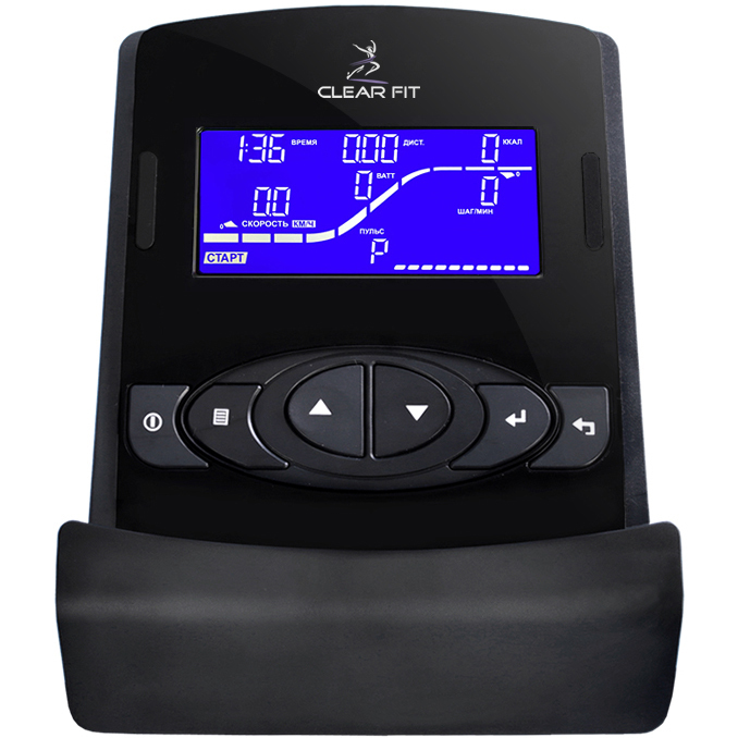 Русифицированный компьютер с контрастным LCD дисплеем 5” позволяет легко выбрать необходимые параметры тренировки, подключать беспроводной датчик пульса, отображает скорость, время, калории, количество шагов в минуту, работу в Вт, диаграмму тренировки и др. Программное обеспечение включает 42 тренировки: 12 встроенных программ, спортивные тесты и анализаторы состава тела, 5 кардиопрограмм, 4 индивидуальных профиля и т.д. Корпус компьютера оборудован системой регулировки угла наклона монитора и удобной подставкой под гаджеты и книги. Разноплановые программы компьютера управления повышают эффективность тренировок и делают их интересными и нескучными. Программы контроля пульса и Ватт-контроля помогают фиксировать нагрузку в зависимости от физического состояния организма и пожеланий к общей эффективности тренировки.