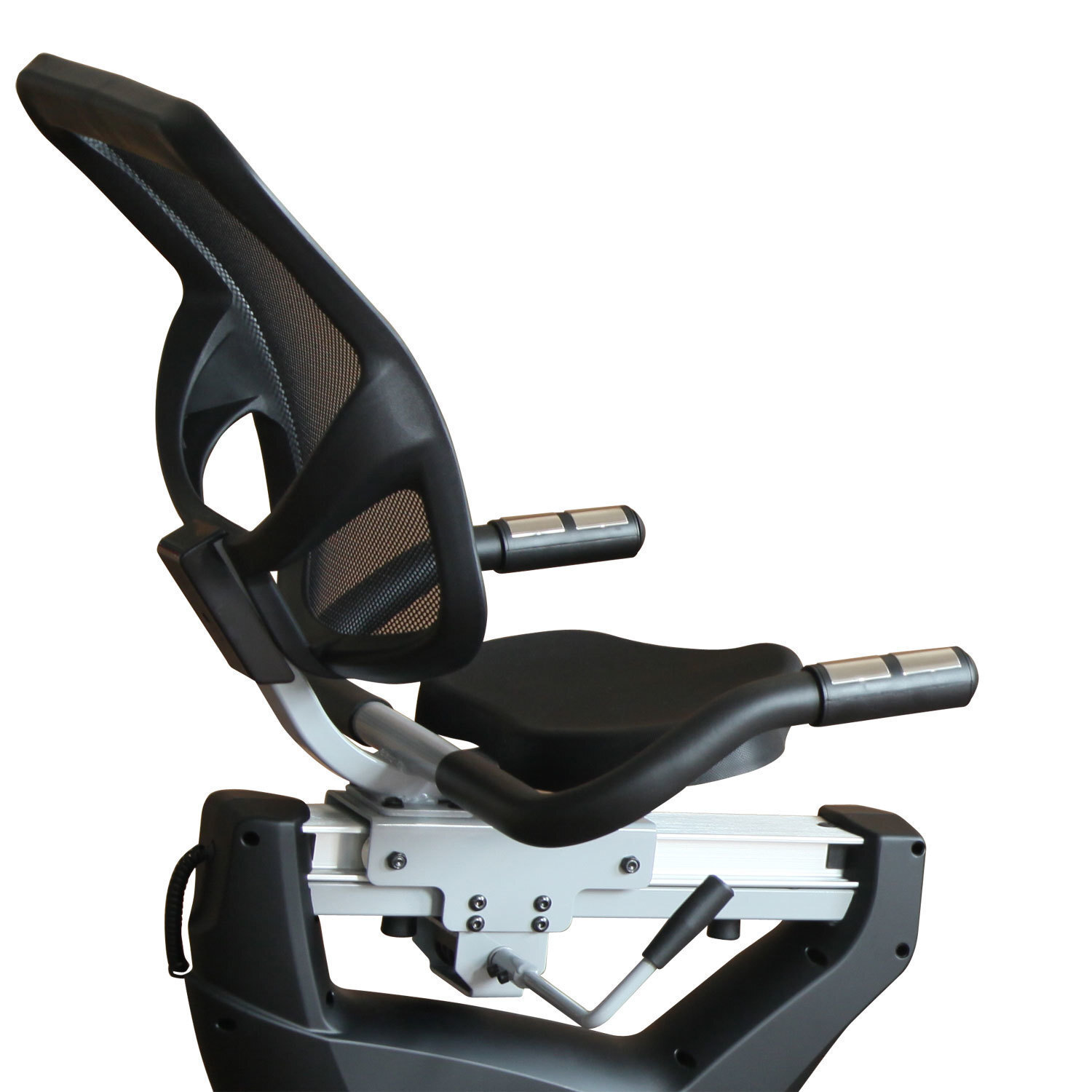 Велотренажер с удобной горизонтальной посадкой и магнитной системой нагружения. Мягкое регулируемое анатомическое сиденье с вентилируемой спинкой для правильной осанки. Датчики измерения пульса расположены на рукоятках и позволяют контролировать частоту сердечного ритма во время движения. Рифленые не скользящие педали позволяют удобно зафиксировать ногу с помощью регулируемого ремешка.
