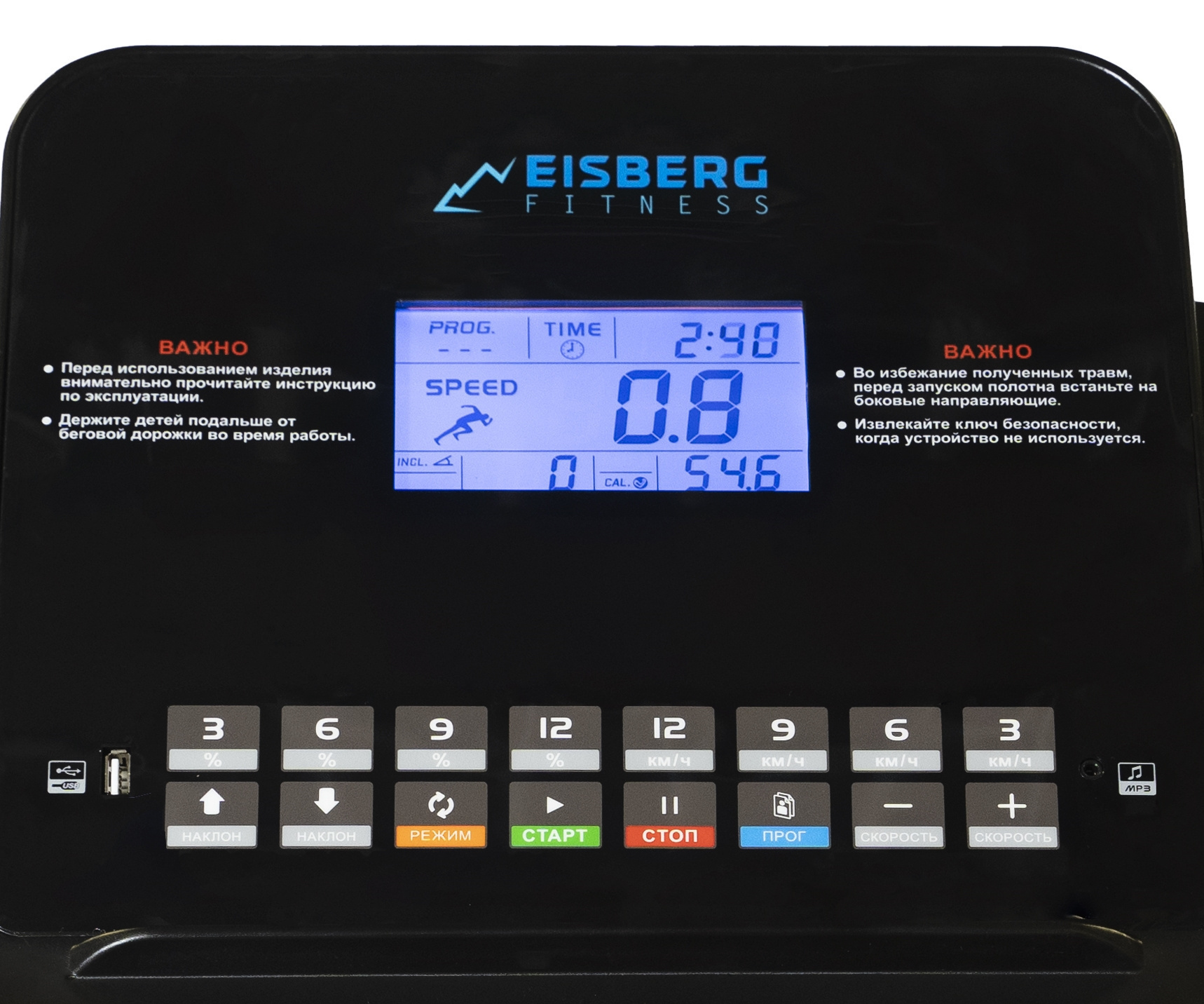 Дисплей: LCD-дисплей (время тренировки, дистанция, скорость, угол наклона, калории, пульс, жироанализатор (FAT)