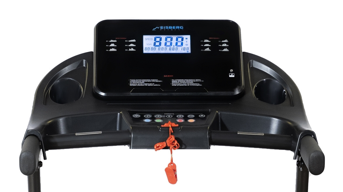 | Дисплей: | LCD-дисплей (время тренировки, дистанция, скорость, угол наклона, калории, пульс, жироанализатор (FAT) |