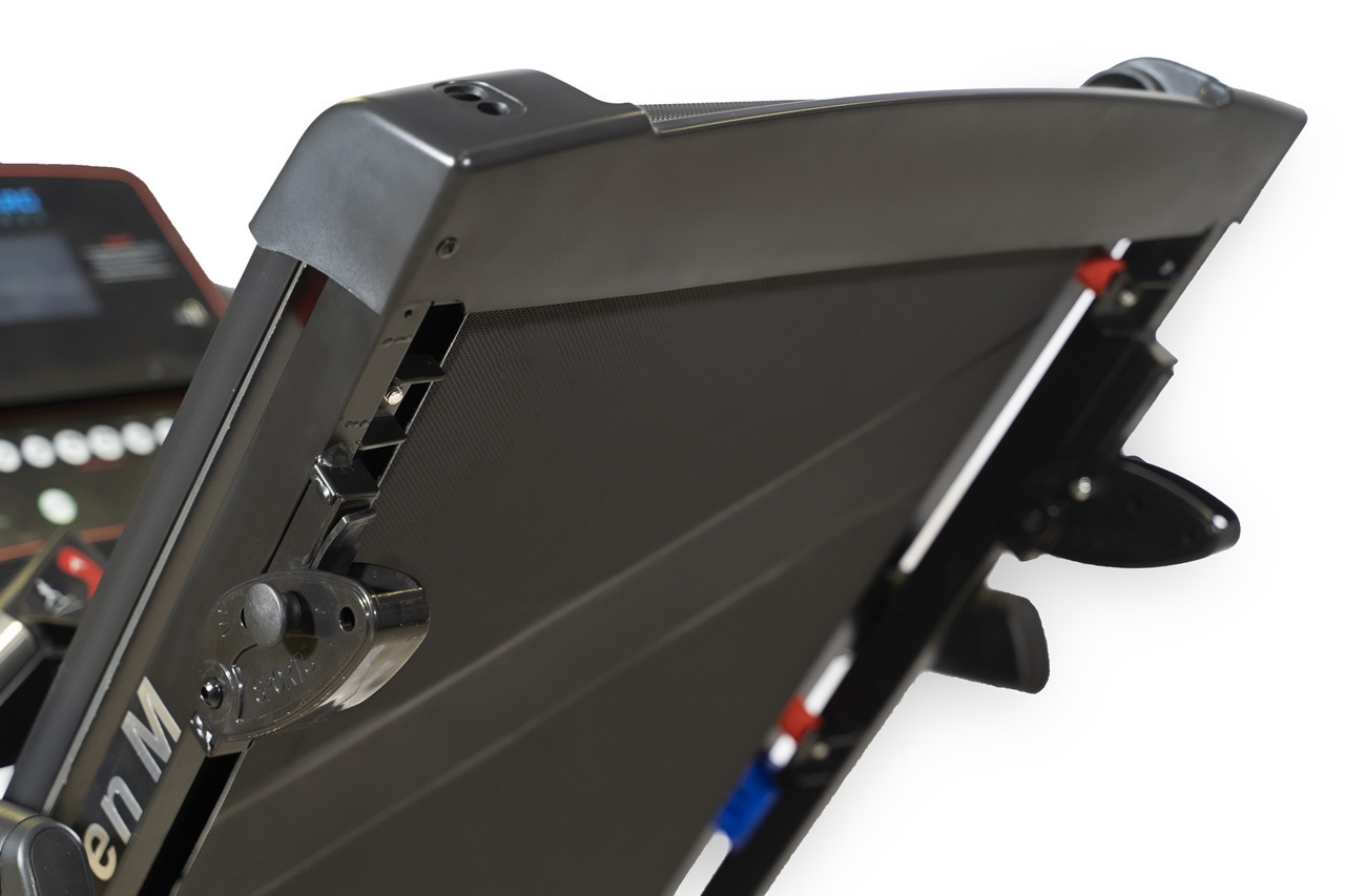 Система амортизации тренажера эффективно подавляет ударную нагрузку на суставы и позвоночник. Анатомические дополнительные поручни ToterGriff™ делают тренировки еще более комфортными, а за простоту обслуживания дорожки отвечает система Verteidiger™. Во время тренировок предусмотрено подключение беспроводного кардиопояса Polar™.