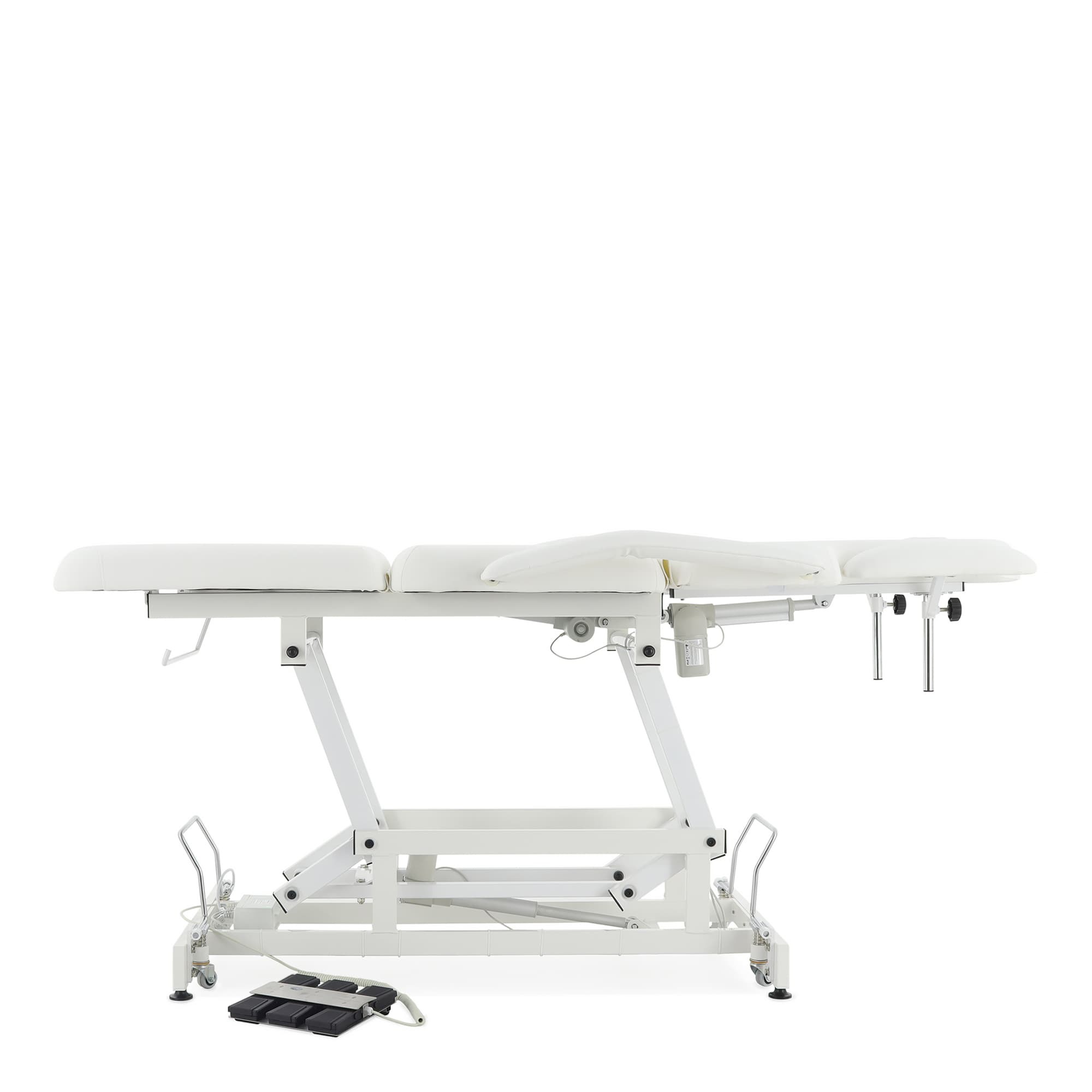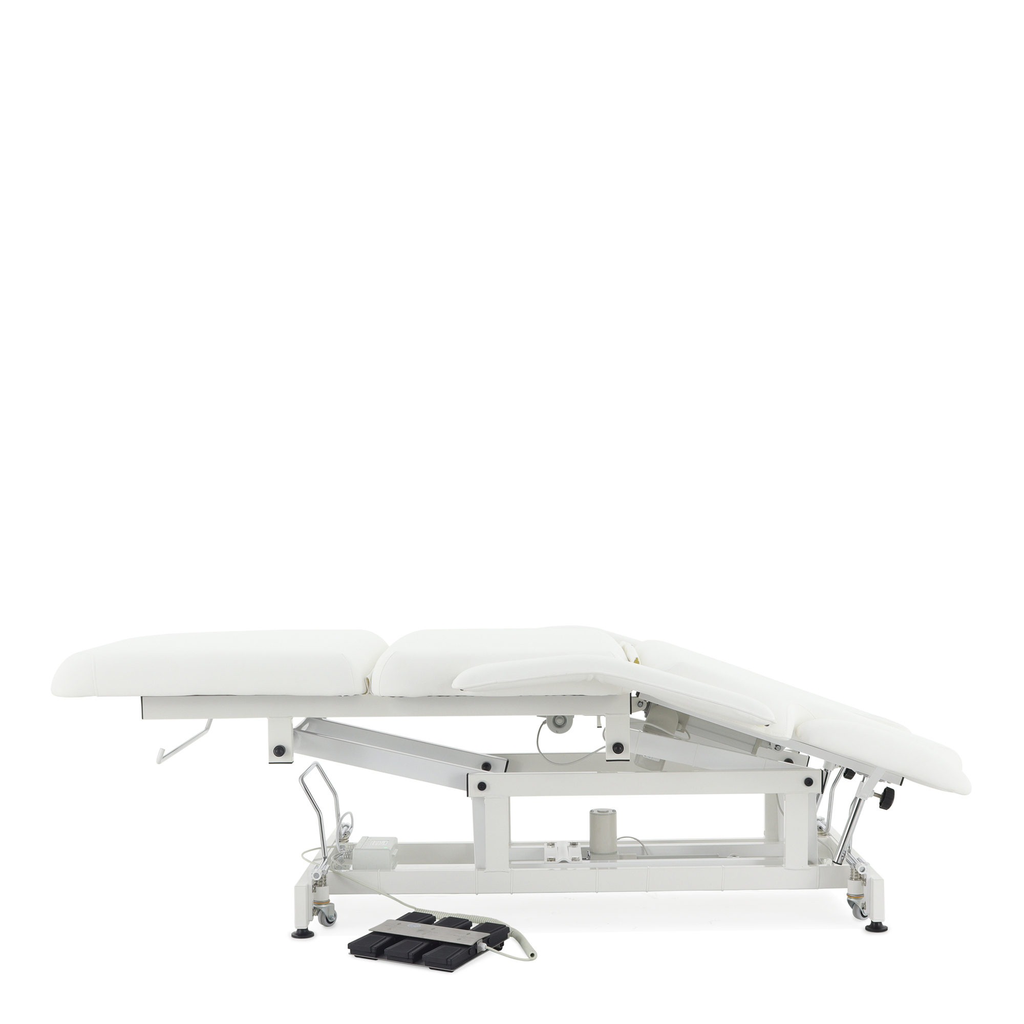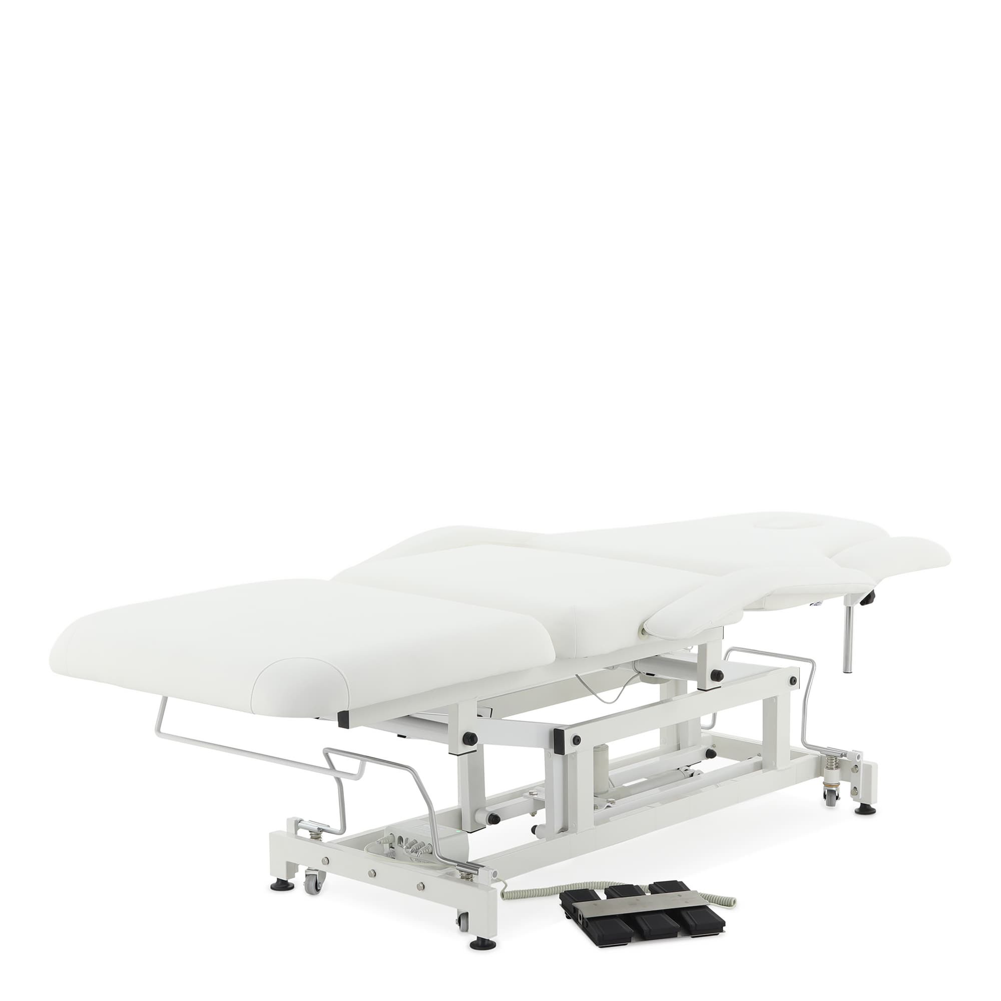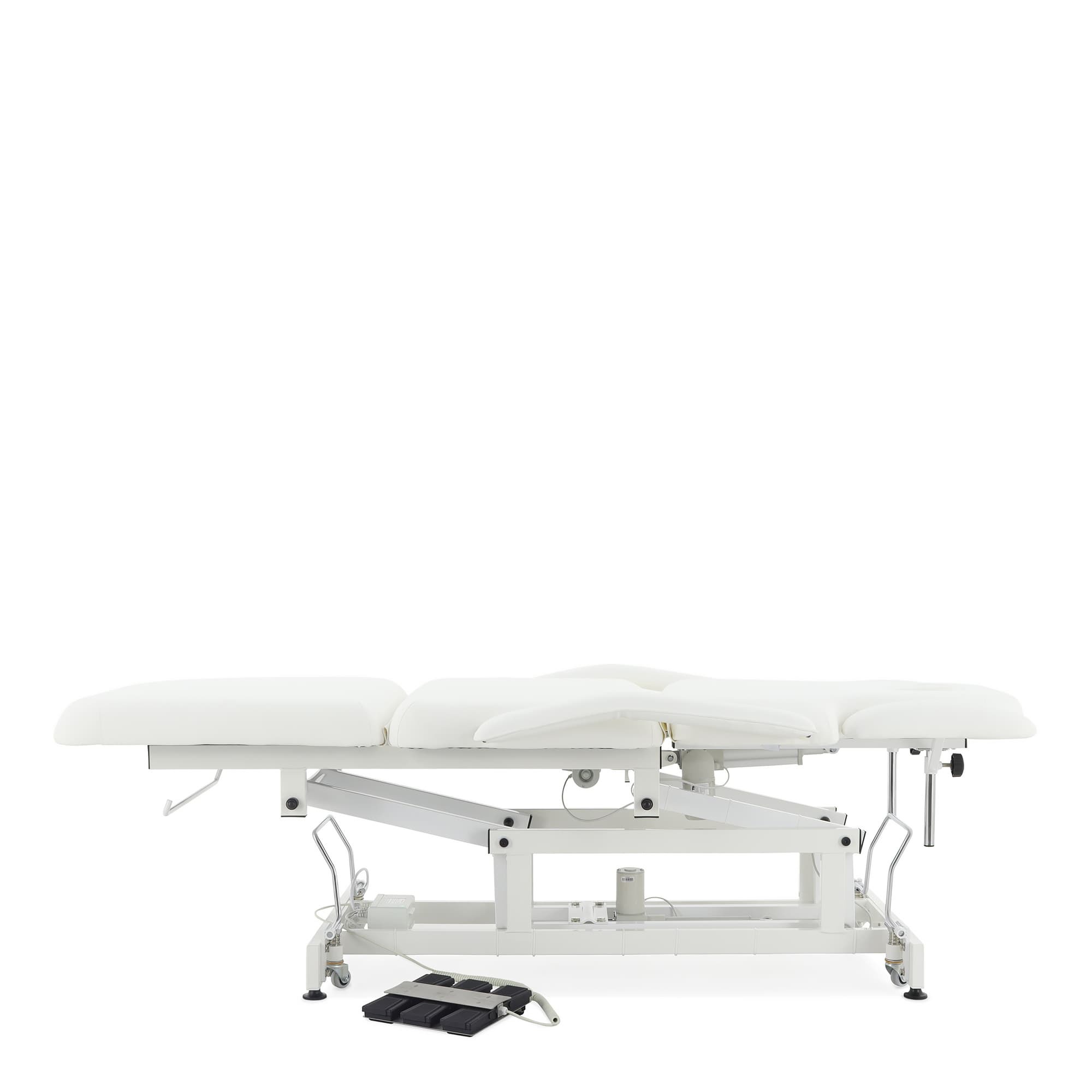 Высота стола и положение всех трех секций регулируется с помощью электропривода.