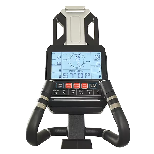 Информативный ЖК-дисплей с диагональю 7 дюймов с высокой контрастностью предоставляет полную информацию о параметрах тренировки, отображая: Время, Дистанцию, RPM (Количество вращений в минуту), Скорость, Расчет калорий, Информацию о пульсе (ЧСС), Целевую пульсовую зону, Контроль нагрузки в Вт.