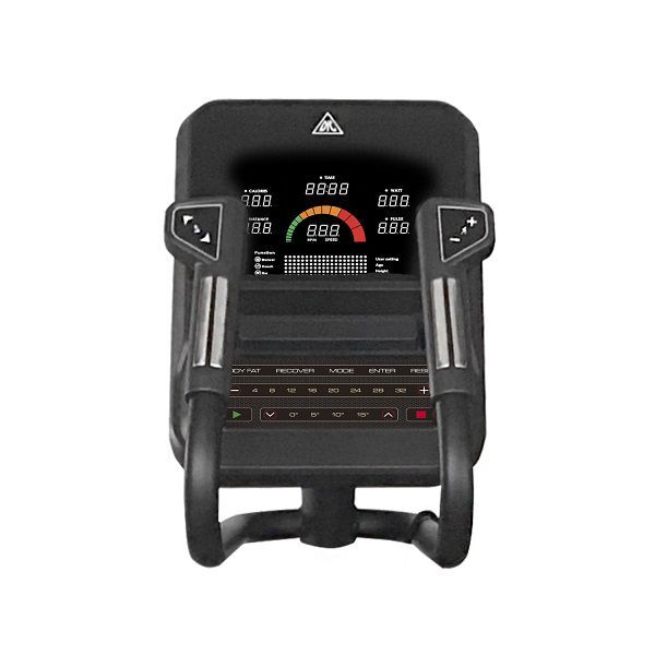 Имеется 12 предустановленных программ для тренировок. Уникальный цветной дисплей — такой практически не встретить среди других аналогов. На нём отображаются: время занятия, скорость, уровень сложности, расстояние, затраченные калории, пульс, который считывается с датчиков на поручнях. Имеются MP3 и USB входы на передней консоли, а также подставки под планшет и бутылку.
