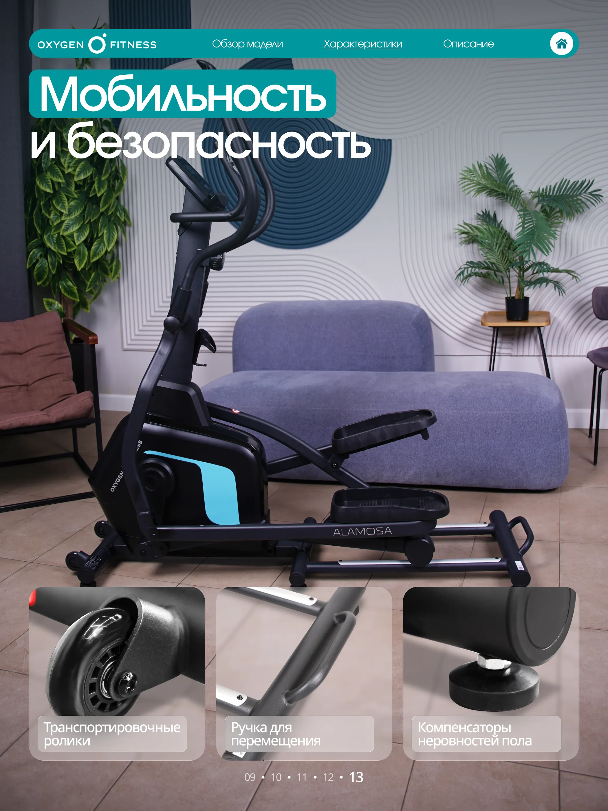 OXYGEN FITNESS ALAMOSA - сбалансированный эллиптический тренажёр для домашних тренировок, сочетающий плавность хода, надёжную конструкцию и комфортную биомеханику для ежедневной работы над выносливостью и формой.