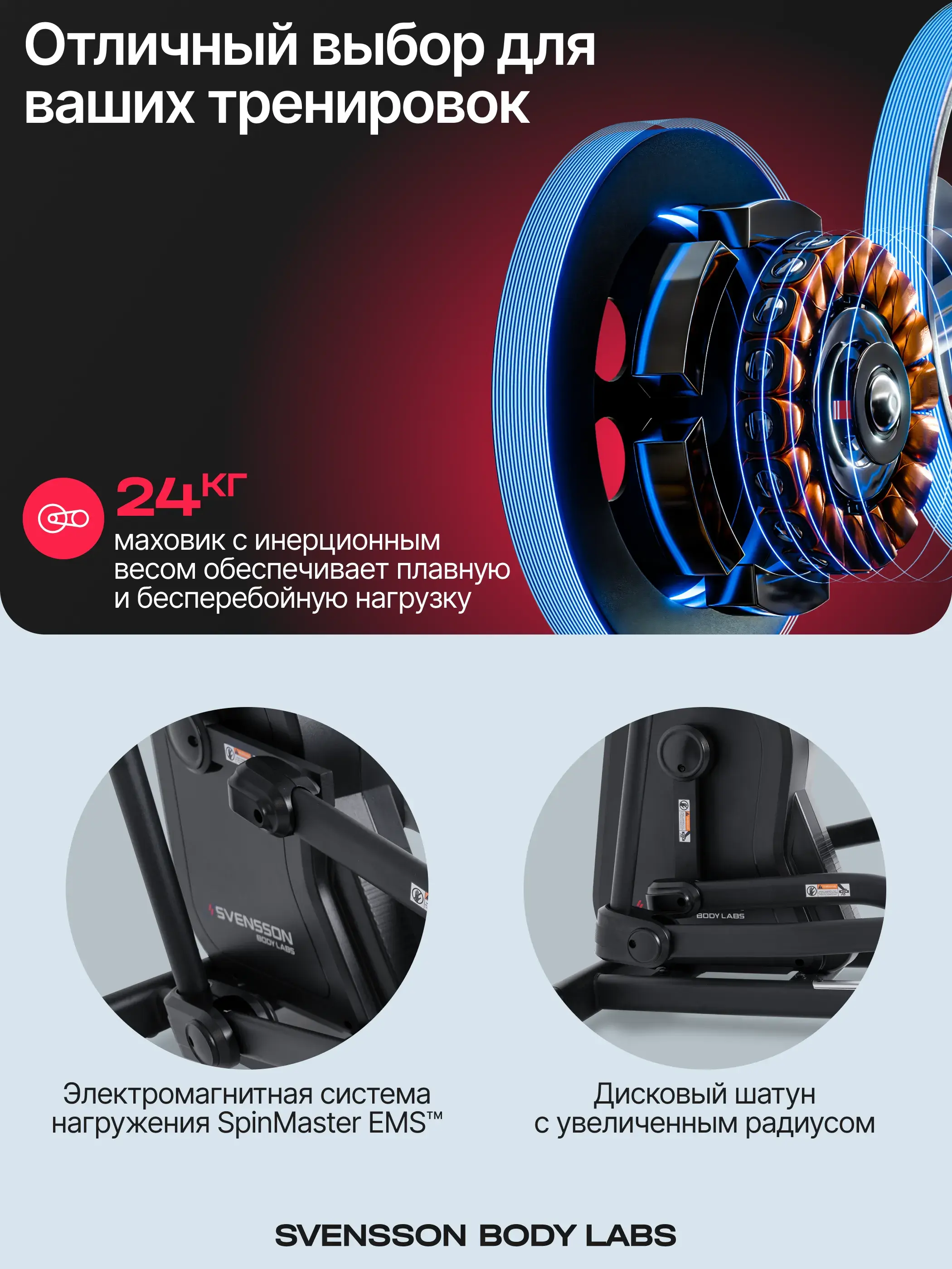 Возможность подключения к тренировочным мобильным приложениям (Kinomap™, Fitshow™) через Bluetooth добавляет элемент интерактивности и мотивации. SVENSSON BODY LABS FORGE сделает ваш домашний фитнес не только более доступным, но и эффективным!