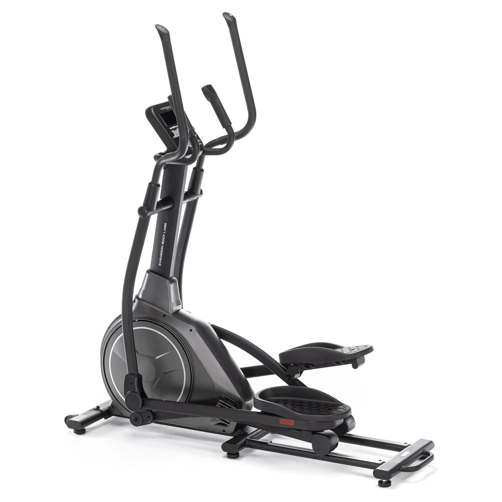 Модель эллиптического тренажёра ZENON от SVENSSON BODY LABS оборудована системой магнитного типа загрузки SpinMaster EMS с шестнадцатью ступенями сложности, позволяющей адаптировать сложность занятий под индивидуальные потребности.