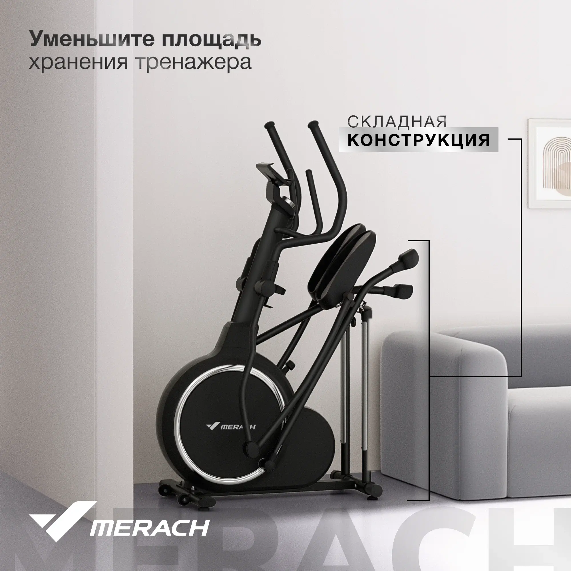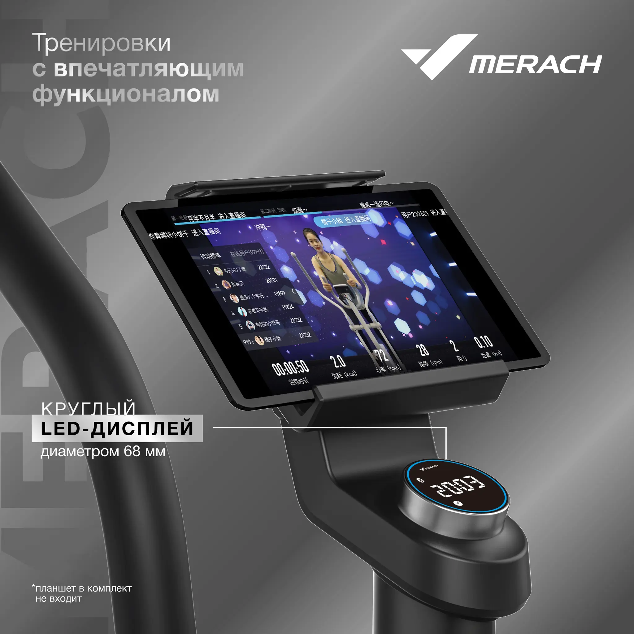 Электромагнитная система позволяет плавно менять нагрузку в зависимости от степени физической подготовки. Модель оборудована модулем беспроводной связи Bluetooth. Это позволяет подключить к устройству смартфон. С помощью фитнес-приложения Merach можно выбрать одну из семи программ тренировок, посмотреть статистику или получить консультацию персонального тренера.