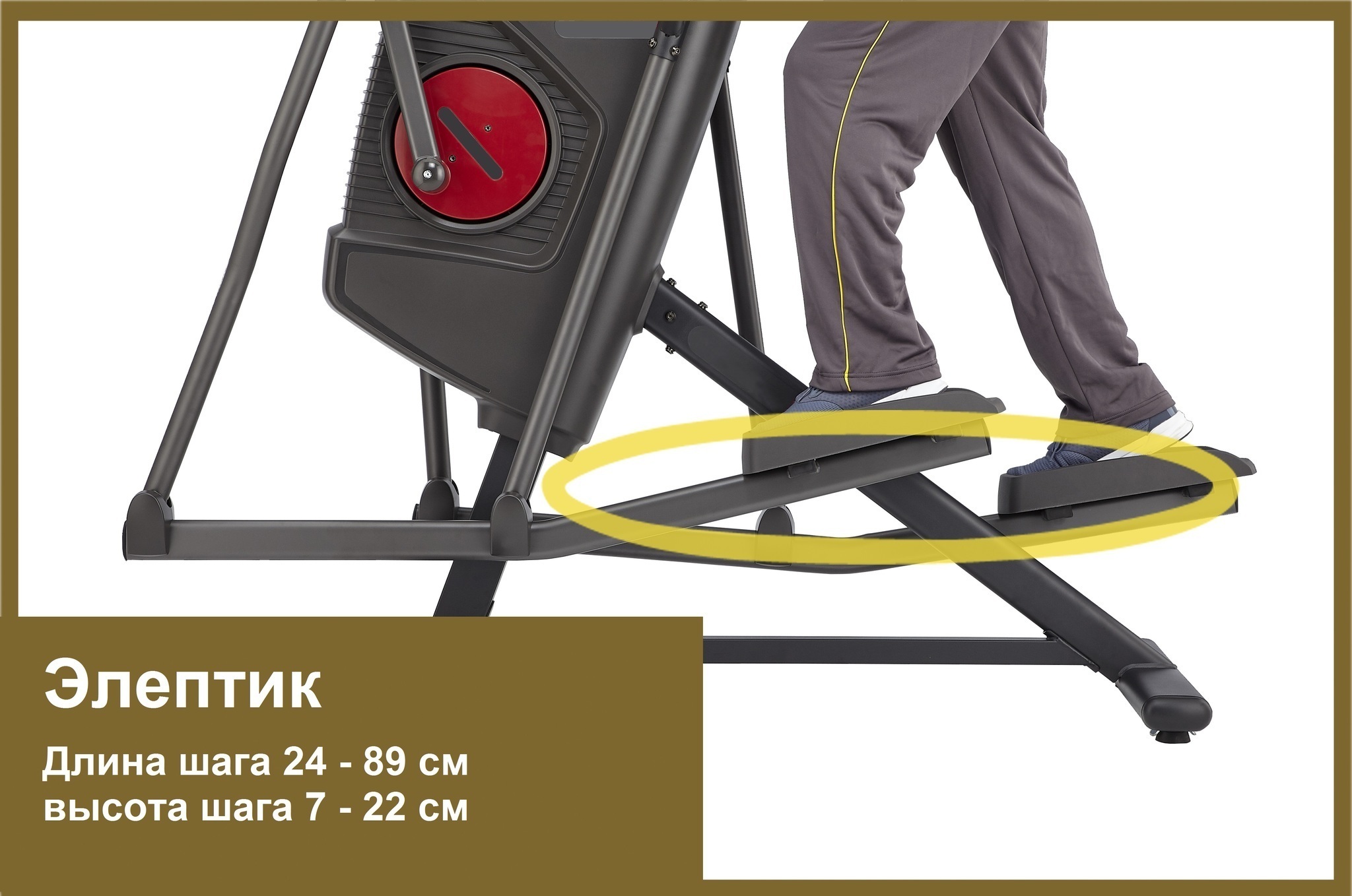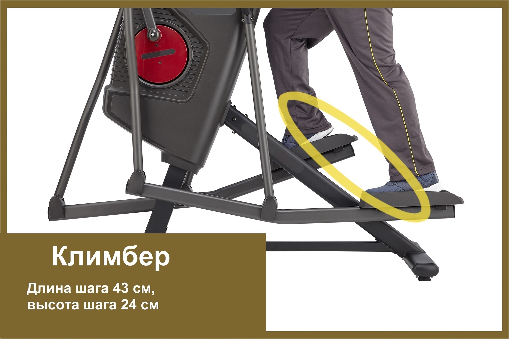 В основе конструкции корпуса тренажера использована прочная рама из усиленного профиля, что гарантирует надежность устройства и позволяет тренироваться пользователям до 160 кг. Подходит для пользователей разного роста, в виду вариативности размера шага - от 24 до 89 см.