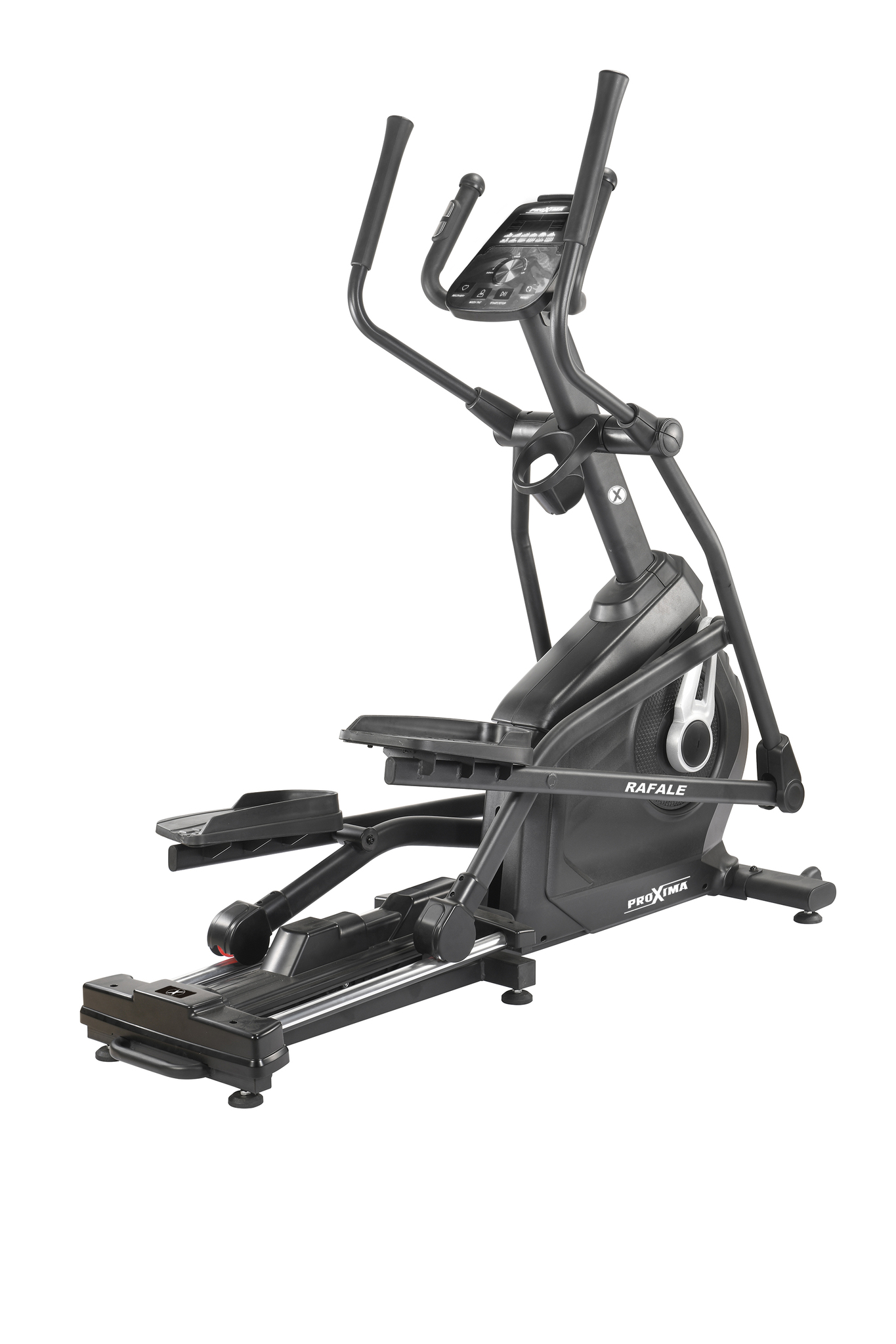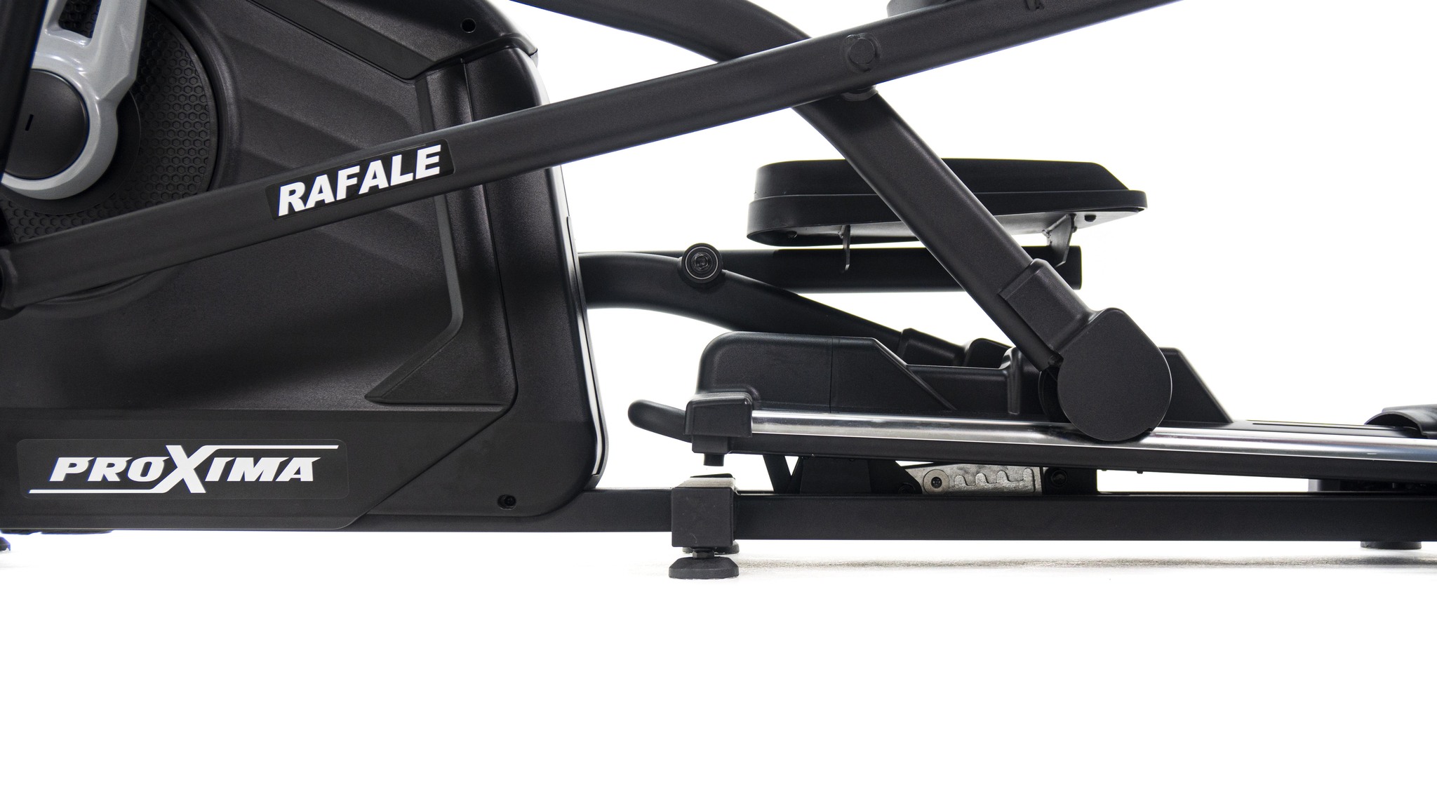 Rafale оснащен механизмом изменения наклона рампы в 4-х уровнях (начальный угол - 2.5°, далее: 4° - 5.5° - 7°- 9°). Данная функция наклона рампы позволяет адаптировать тренажер под разные цели, создать нагрузку на разные группы мышц, использовать разные типы тренировок.