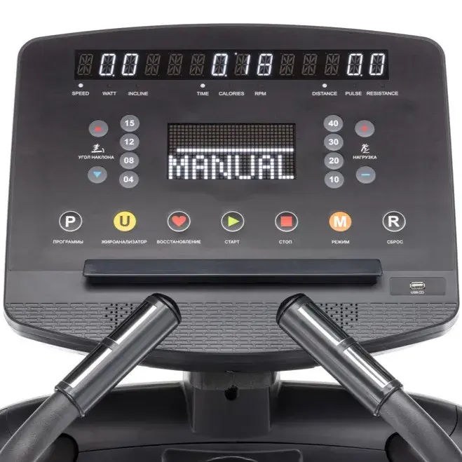 Одной из ключевых инноваций этой модели является обновленный LED дисплей с точечной матрицей, который выводит на экран все важные параметры тренировки: время, скорость, дистанцию, калории, пульс, ватты, профиль, уровень нагрузки и наклона.