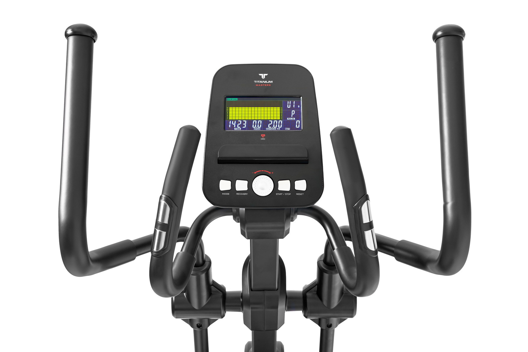 Консоль Titanium Masters Frontech FPA представлена цветным LCD-дисплеем диагональю 5,5 дюйма (14 см) с профилем тренировочных программ. 12 предустановленных программ направлены на тренировку скоростных качеств, выносливости, укрепления сердечно-сосудистой системы и похудания. Помимо этого, можно воспользоваться самостоятельно регулируемым ручным режимом, а также создать 4 собственные программы. Для тренировок с контролем пульса существуют 4 пульсозависимые программы с предустановленными значениями 55%, 75%, 90% и 100% от максимального пульса (точная цифра частоты сердечного ритма определяется исходя из возраста пользователя). Безусловно, полноценная пульсозависимая тренировка потребует наличия телеметрии – для этого в консоль тренажера встроен приемник частоты сердечного пульса (для полноценной работы потребуется нагрудный передатчик пульса Titanium Masters HR Transmitter (приобретается отдельно) или совместимый. Ватт-программа позволяет зафиксировать необходимый уровень нагрузки - он останется постоянным вне зависимости от скорости вращения педалей. Небольшой, но востребованной опцией является подставка под смартфон – просмотр видео, соцсети или простой серф в интернете поможет скрасить рутинность тренировок. Тренажер перемещается за счет транспортировочных роликов, а выровнять его положение на поверхности можно при помощи компенсаторов неровностей пола.