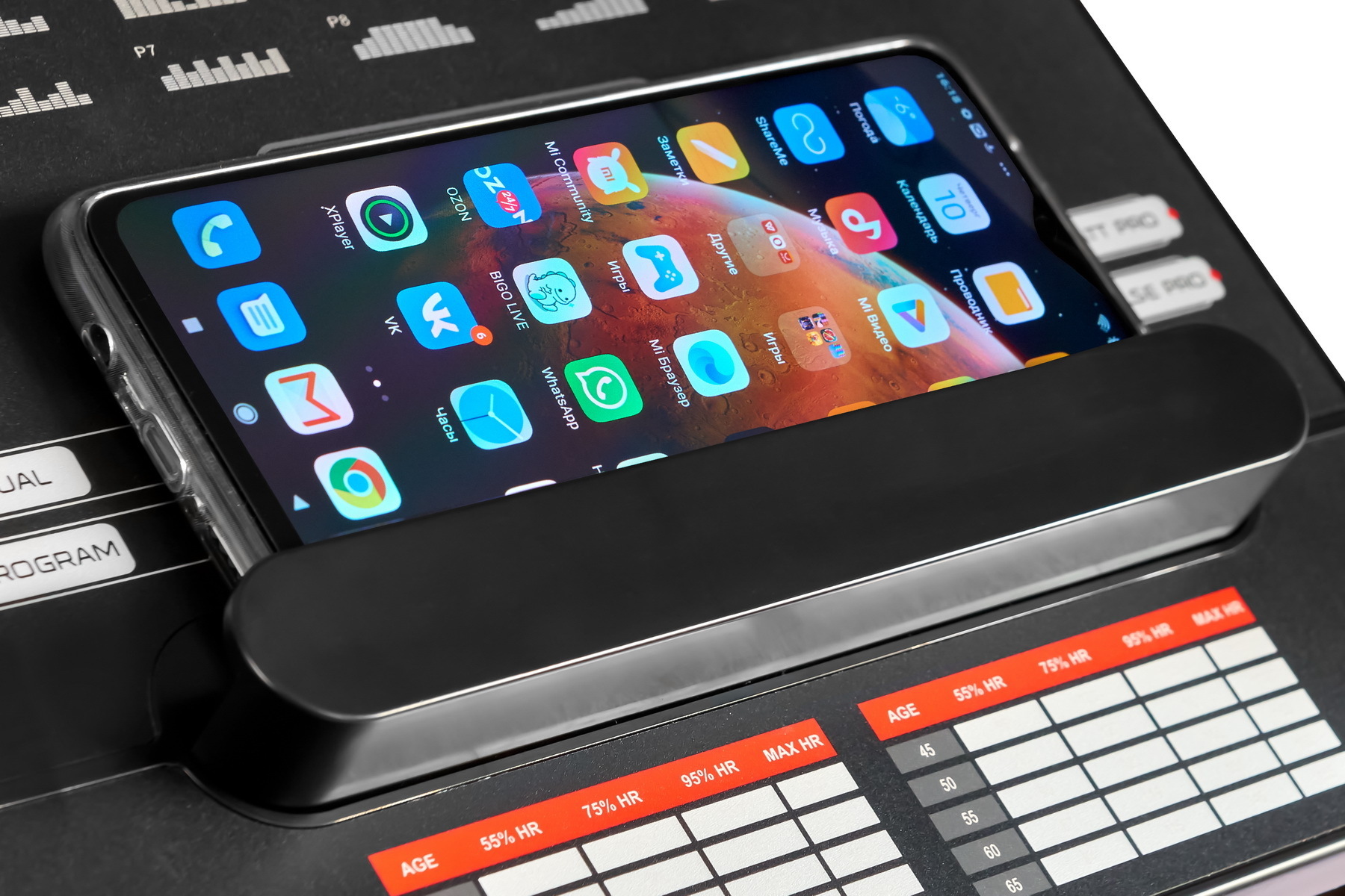 черно-голубой LCD-дисплей диагональю 5,5 дюйма (14 см) с профилем тренировки