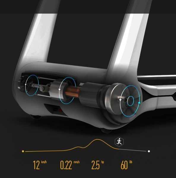 Надежная конструкция рамы рассчитана на интенсивное использование тренажера пользователями до 130 кг. Толщина деки 16 мм. Высокопрочное многослойное беговое полотно толщиной 1,6 мм относится к классу коммерческих и рассчитано на интенсивную многолетнюю эксплуатацию. Беговая дорожка совместима через Bluetooth с мобильным приложением «YPOO», доступным для iOS и Android, которое включает в себя множество различных программ тренировок.
