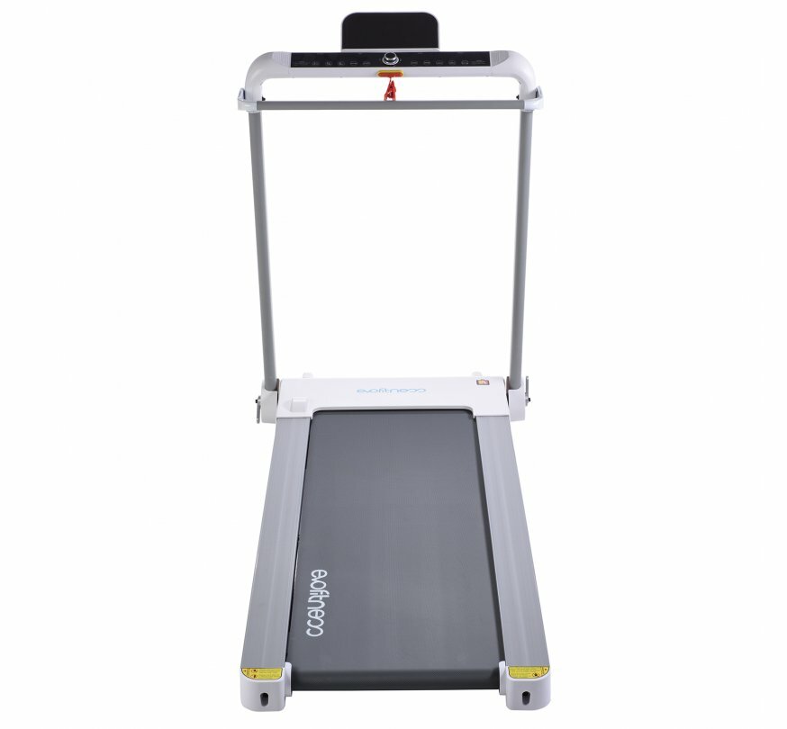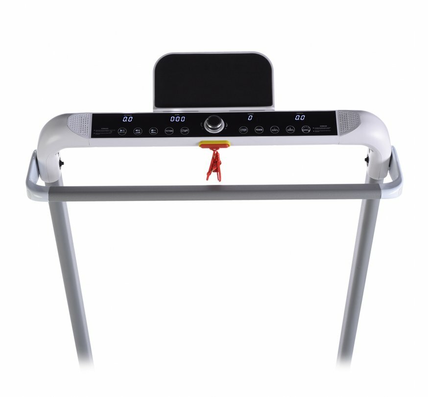 Транспортировочные ролики позволяют легко перемещать беговую дорожку, например, во время уборки. Кроме того, система складывания обеспечивает компактное хранение, для складывания не нужны дополнительные инструменты. За пару секунд вы можете сложить дорожку, когда она не используется. Тренажер можно хранить в горизонтальном и в вертикальном виде, для этого предусмотрена специальная подставка. В сложенном виде толщина беговой дорожки составляет всего 20 см. В рабочем состоянии беговая дорожка имеет длину 151 см, ширину 74 см и высоту 113 см. Для устойчивости, а также бережного отношения к вашему напольному покрытию дорожка оснащена регуляторами неровности пола.
