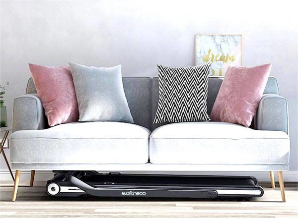 Беговая дорожка имеет стильный футуристический дизайн, который идеально впишется в любой интерьер. Тренажер оснащен уникальной, простой в использовании, системой складывания, которая существенно экономит полезное пространство в квартире. Занимаемая площадь беговой дорожки в сложенном виде в 3 раза меньше по сравнению с беговыми дорожками с обычной системой складывания. Боковые стойки и консоль подвижные и позволяют сложить их в одной плоскости. Хранить беговую дорожку можно в любом удобном положении: горизонтальном либо вертикальном. Ее можно хранить в шкафу, под кроватью, в кладовке, в нише или просто у стены, так как толщина дорожки в сложенном виде составляет всего 20 см.