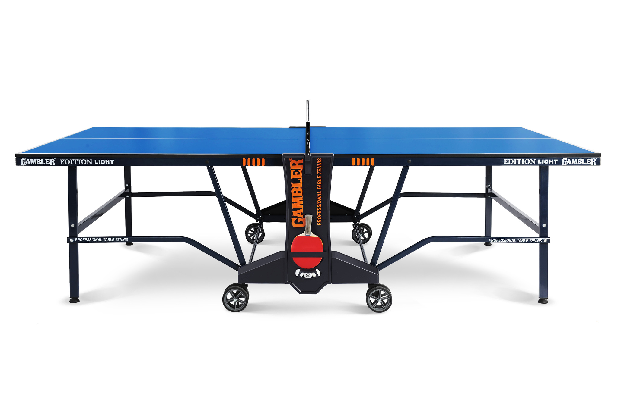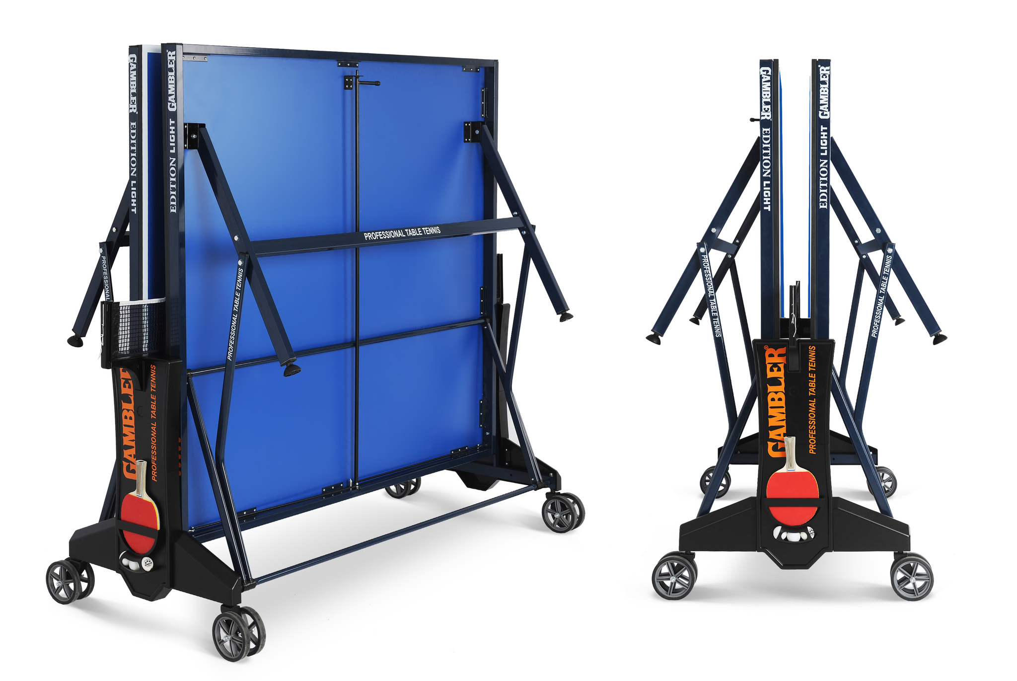 Легкая и удобная система складывания делает эту модель компактной и маневренной. Прорезиненные колеса гарантируют комфортное перемещение стола. Специальные конструкторские элементы позволяют фиксировать теннисный стол как в сложенном, так и разложенном виде. Подходит в качестве тренировочного стола для учебных заведений и клубов. Стол оснащен удобными боковыми накладками для хранения ракеток и мячей.