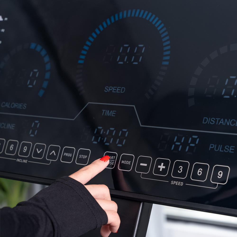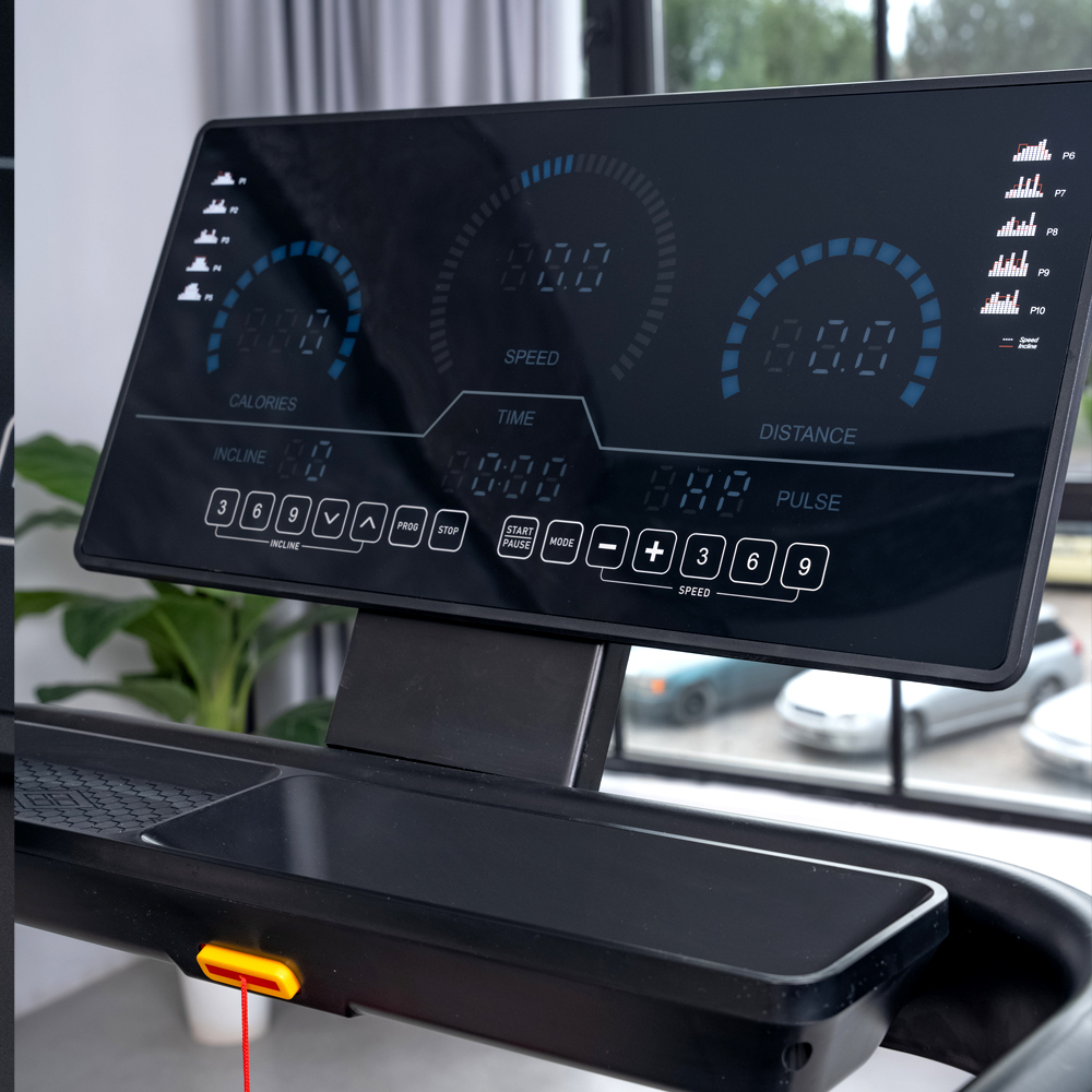 - Современная консоль с большим ЖК-дисплеем предоставляет всю необходимую информацию о тренировке, включая скорость, время, дистанцию и сожженные калории;