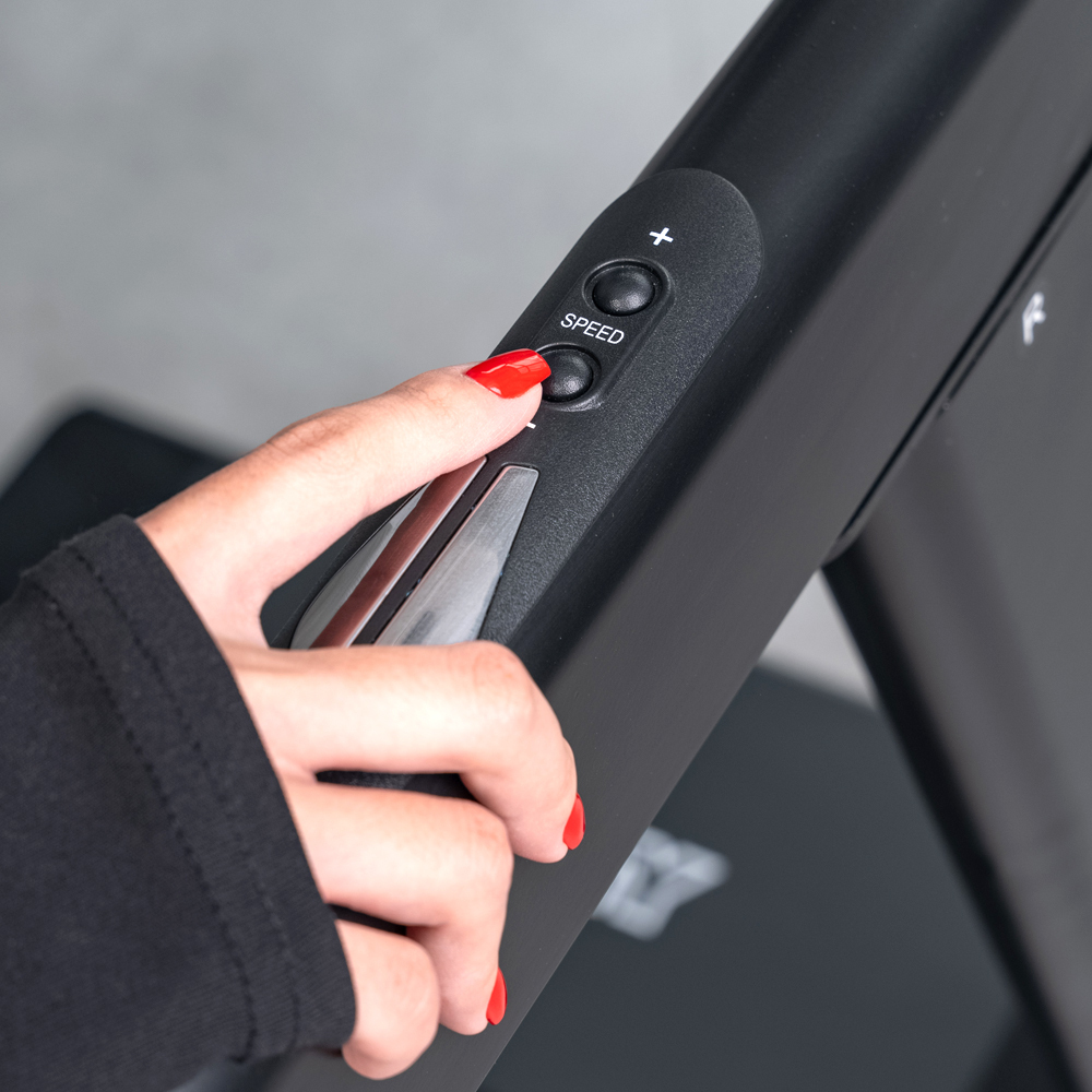 - Простое управление с помощью кнопок скорости и наклона на рукоятке делает использование беговой дорожки максимально удобным;
