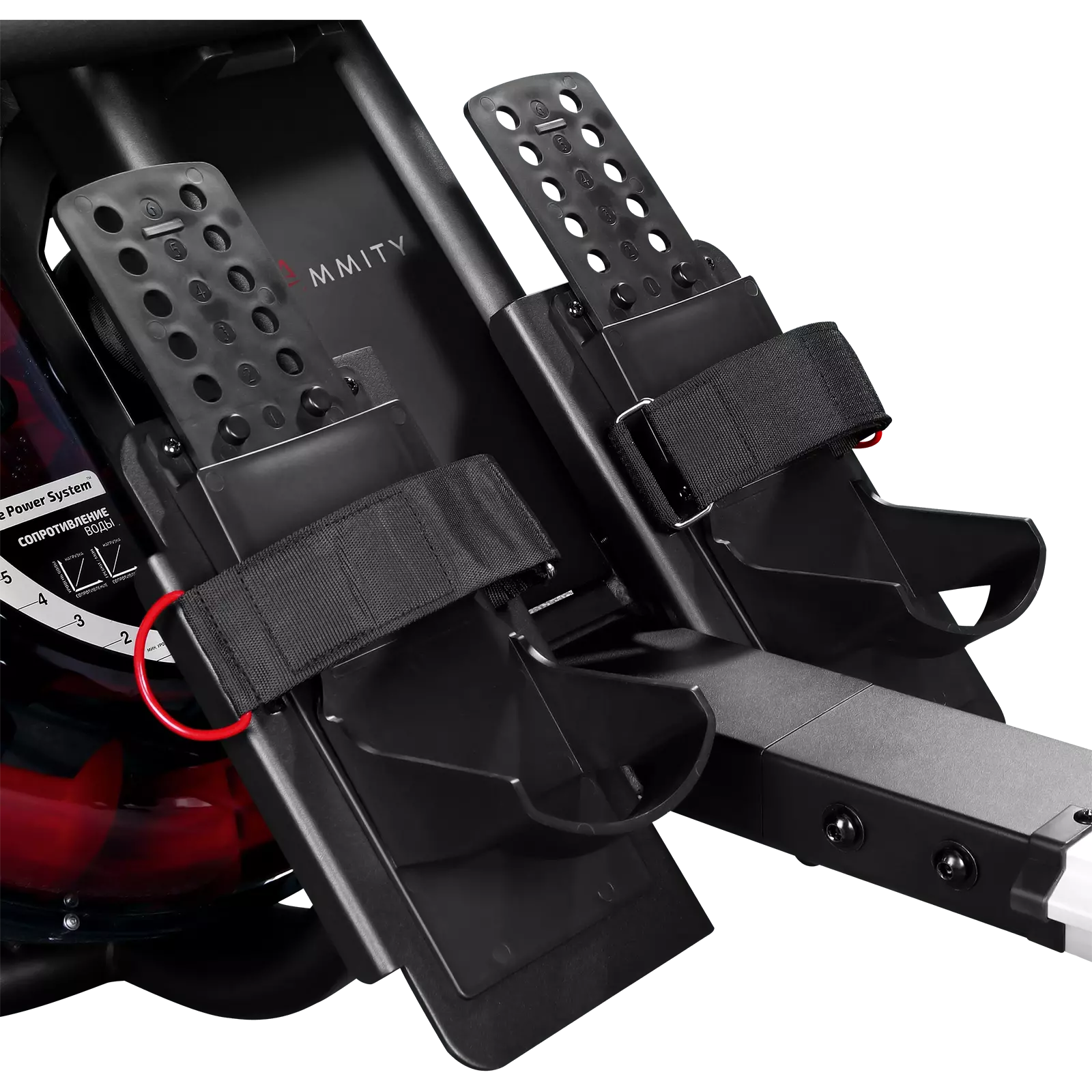 Надежная и эргономичная конструкция тренажера обеспечивает комфорт тренировок пользователям до 150 кг в диапазоне допустимого роста от 150 до 200 cм, обеспечивая правильное и удобное положение спортсмена. Прочная рама, качественные подшипники, алюминиевая монорельса и прорезиненные ролики гарантируют плавность скольжения сиденья. Вес тренажера при заполненной водой системой сопротивления до 48 кг.