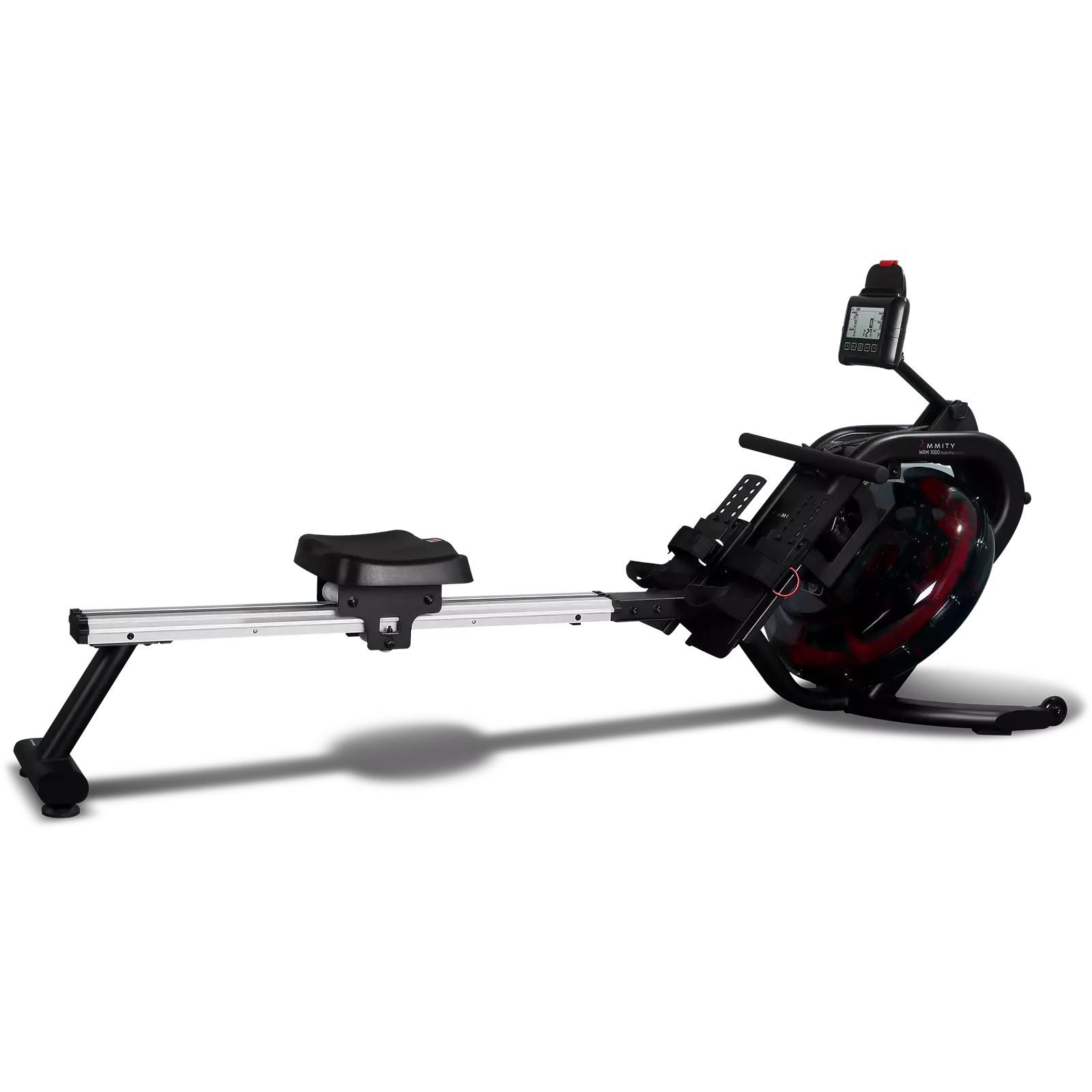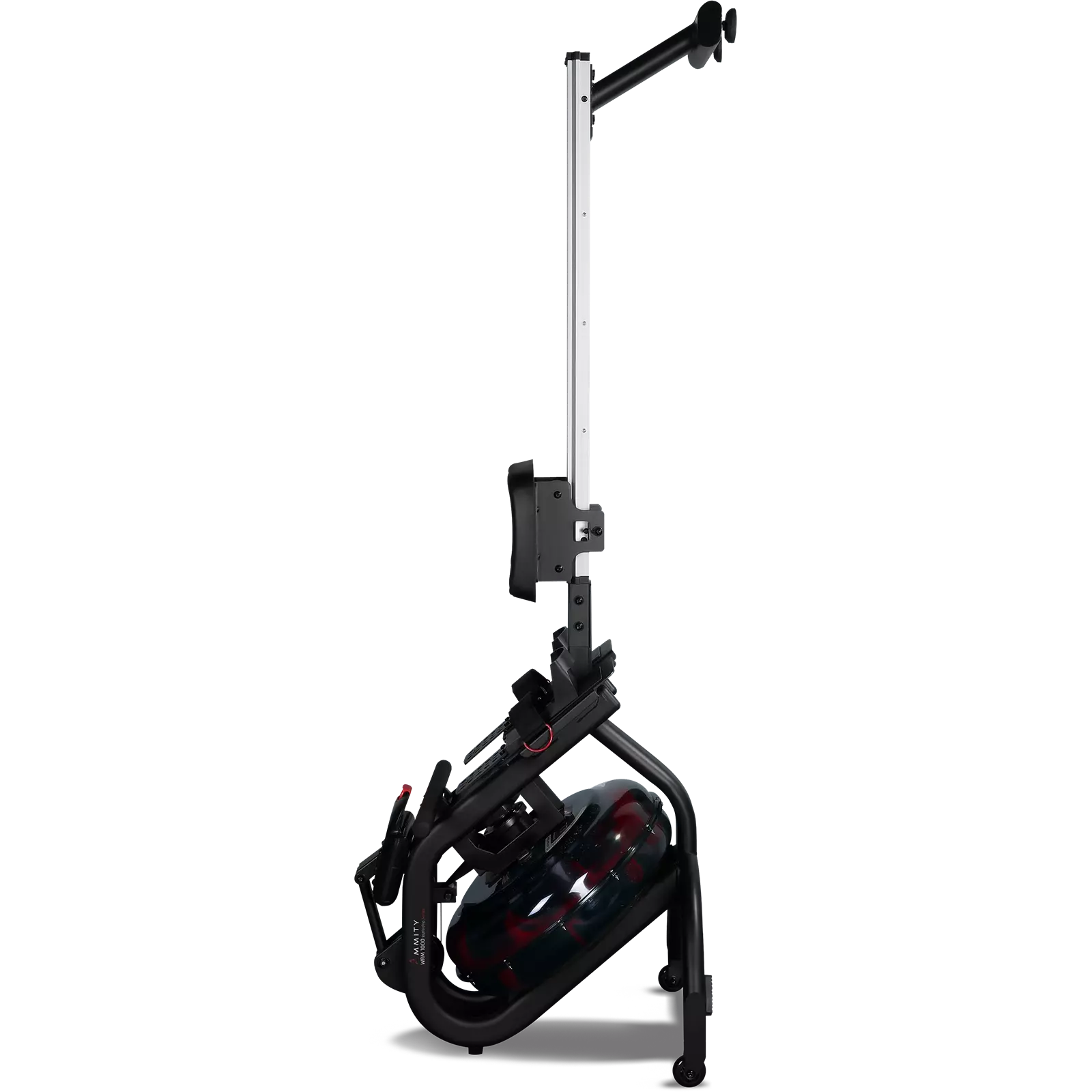 Гребной тренажер Ammity WRM 1000 — оснащен водоналивной системой сопротивления нового поколения, конструкция основного блока нагрузки из бака и лопастей размещена под углом 45 градусов, что увеличивает эффективность на 30 %, создается более высокая нагрузка. Модель предназначена как для укрепляющих и восстанавливающих кардиотренировок, так и для тренировок повышенной интенсивности. Правильные широкие гребки и плавное скольжение обеспечивают мощный алюминиевый трек, рабочая длина 815 мм, надежная система привода IronPRO™ и высококачественные подшипники седла. Водоналивная система PurePowerSystem™ создает мощное стабильное сопротивление, состоит из 6 уровней, максимальный уровень 395 Вт. Плавная нагрузка без рывков сопротивления повышает эффективность и безопасность тренировки, помогает сохранить темп и контролировать скорость, имитируя естественную греблю. Модель WRM 1000 обеспечивает эффективные кардиотренировки, задействует практически все группы мышц, формирует правильный мышечный каркас и осанку, тренирует сердечно-сосудистую систему и дыхание. Прочная рама, качественные комплектующие и фурнитура обеспечивают высокую надежность конструкции, плюс вертикальная система складывания для компактного хранения и перемещения. Тренажер WRM 1000 может использоваться в любом возрасте, рекомендуемый вес пользователей до 150 кг, диапазон роста от 150 до 200 см.