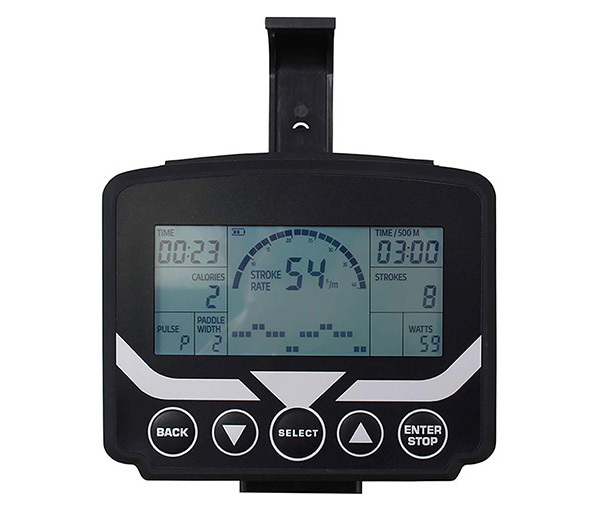 Большой дисплей удобен для чтения и отображает: время, частоту гребков, дистанцию и потраченные калории
