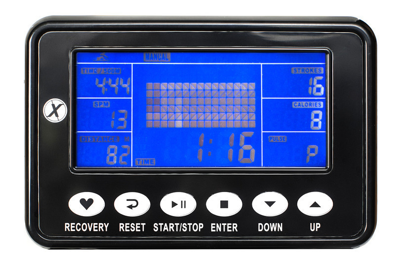 На консоли Proxima Remos отображаются скорость, время,расстояние, израсходованные калории, пульс, обороты в минуту. По желанию можно использовать нагрудный датчик.