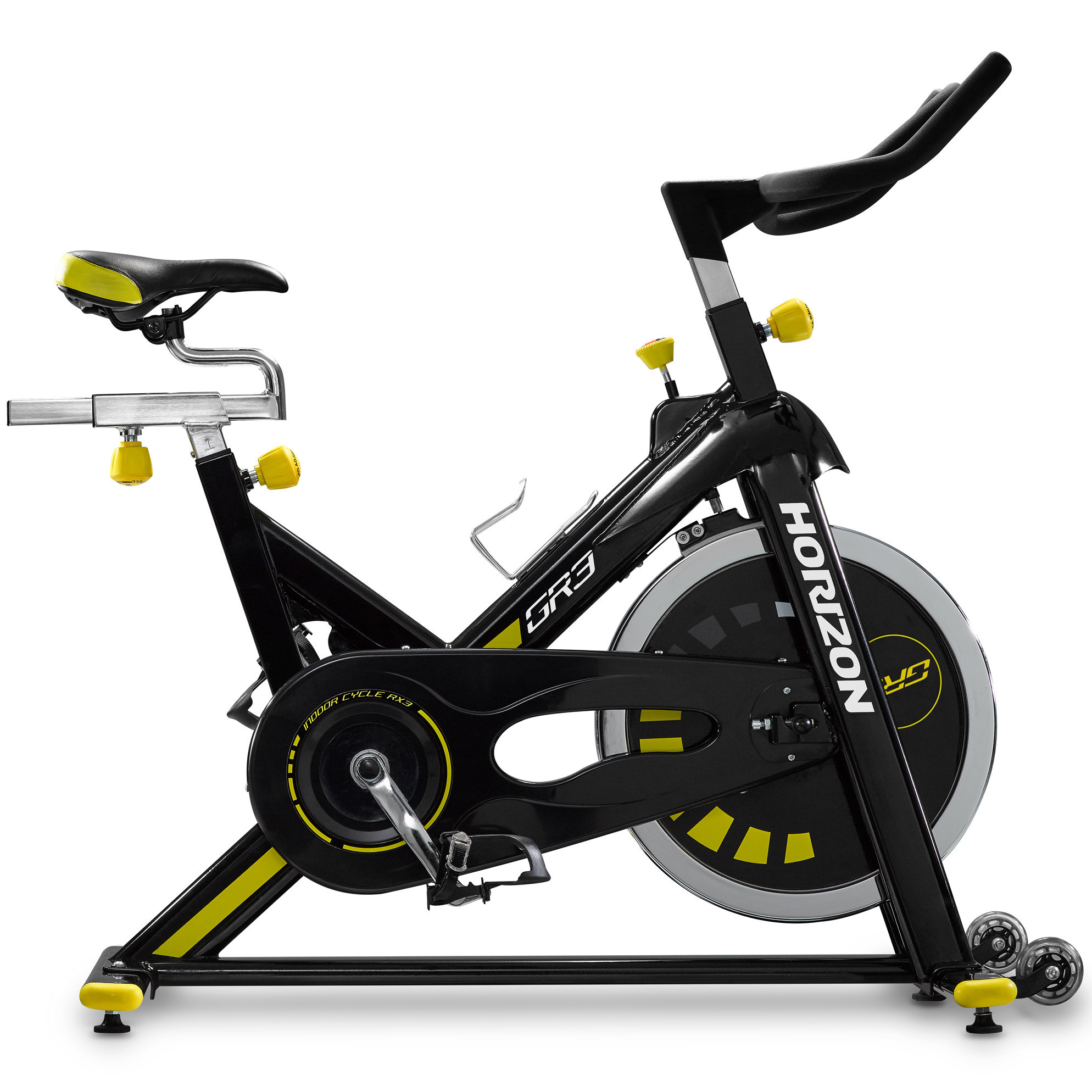 Возможность различных хватов на рукоятках, комфортное сиденье и педали создают ощущение максимально приближенное к реальному заезду по шоссе. Сиденье и руль регулируются в двух плоскостях: по вертикали и по горизонтали. Колодочная система сопротивления с цепным приводом обеспечивает постоянную динамическую корректировку нагрузки. Благодаря встроенным компенсаторам неровностей пола спинбайк устойчив даже в ходе самого интенсивного тренинга, а наличие встроенных полиуретановых роликов позволяет оперативно переместить его в любое удобное место. На раме предусмотрен держатель для бутылки.
