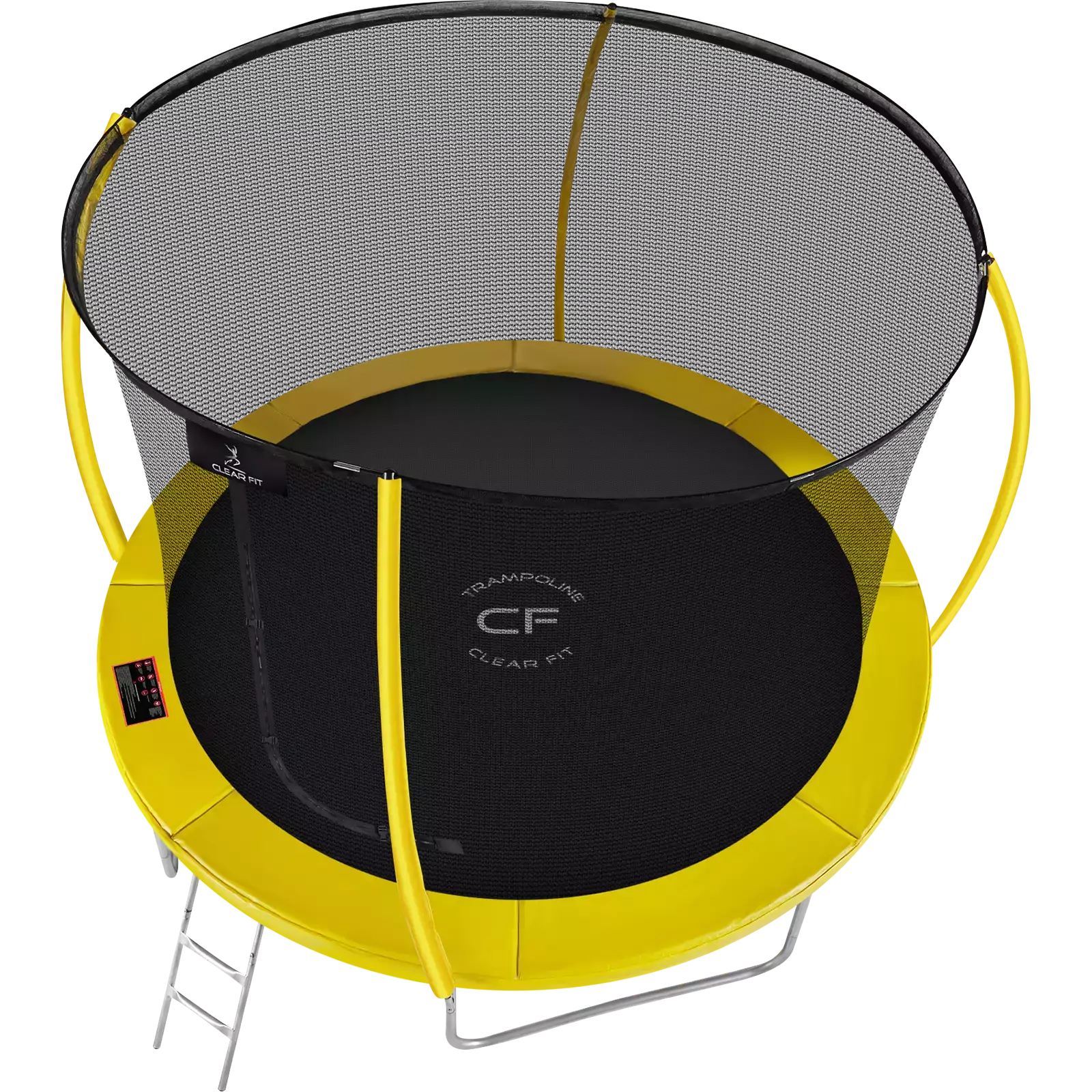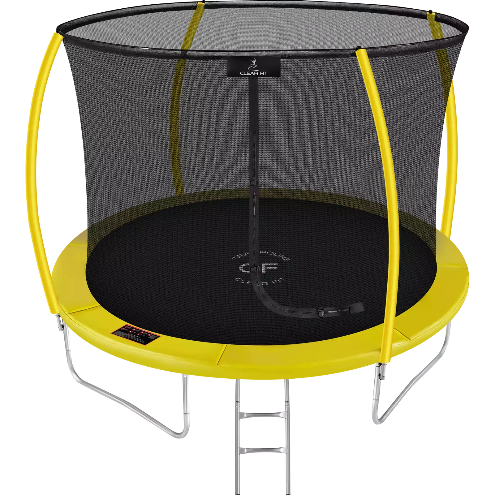 Современные батуты Clear Fit серии SunHop — отличаются комфортом и надежностью. Надежная рама из качественных комплектующих, прочная защитная сеть снабжена прямым креплением к прыжковому полотну и дополнительной защитой входа, наверху каркасное жесткое крепление, сеть не провисает и не слетает во время тренировок. Увлекательный, полезный и безопасный тренажер для всей семьи. Батуты серии SunHop поставляются в оптимальной для комфорта и безопасности комплектации: батут, верхняя защитная сеть, защитный мат и лестница. Благодаря размеру батута в 10 футов и диаметру прыжковой поверхности 2.62 м он идеально подходит для дачного участка, размеры полотна позволяют комфортно тренироваться взрослым и развлекаться детям любого возраста. Верхняя защитная сеть оберегает от падений, усиленная молния и дополнительная защита входа уберегут малышей от случайного входа или падения. Надежный каркас из оцинкованной стали, качественные комплектующие и погодостойкие гальванизированные метизы рамы делают батут безопасным, устойчивым, надежным, гарантируют полную защиту от коррозии и долгий срок службы. Максимальный вес пользователя батута SunHop 10Ft — до 150 кг.