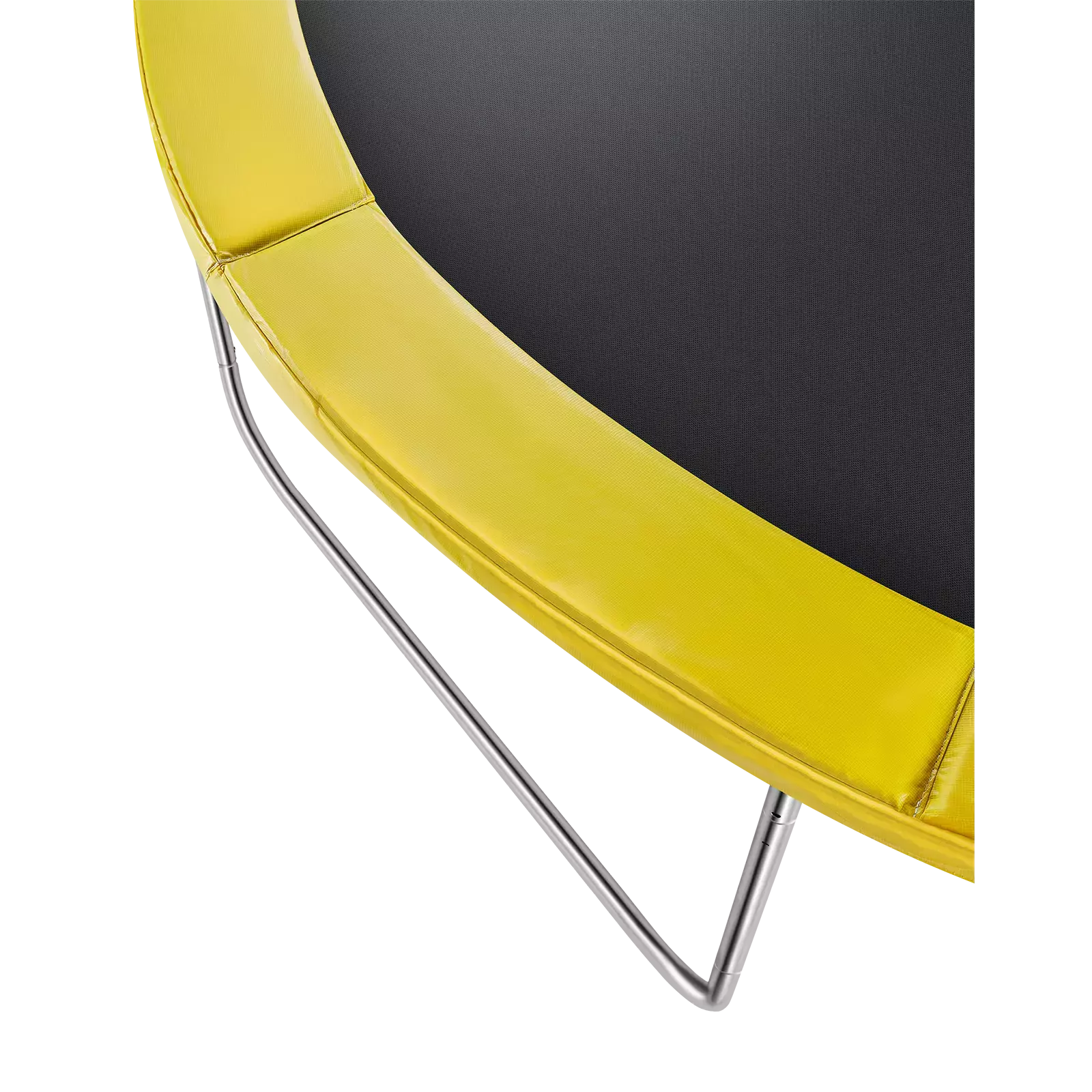 Пружины выполнены из гальванизированной стали толщиной 3 мм, устойчивы к коррозии и долговечны, длина пружин 140 мм, для батута размером в 10 футов используется 64 пружины по периметру, что обеспечивает оптимальную амплитуду и безопасность для нагрузки до 150 кг. Пружинный механизм закрыт мягким многослойным защитным матом шириной 300 мм, он полностью закрывает раму, пружины и все твердые элементы окантовки. Мат состоит из следующих слоёв: внутренний мягкий амортизирующий слой EPE толщиной 15 мм, далее термостойкий слой (PE) и внешний слой износостойкого негорючего поливинилхлорида (PVC), прочный, яркий, всепогодный, влагостойкий.