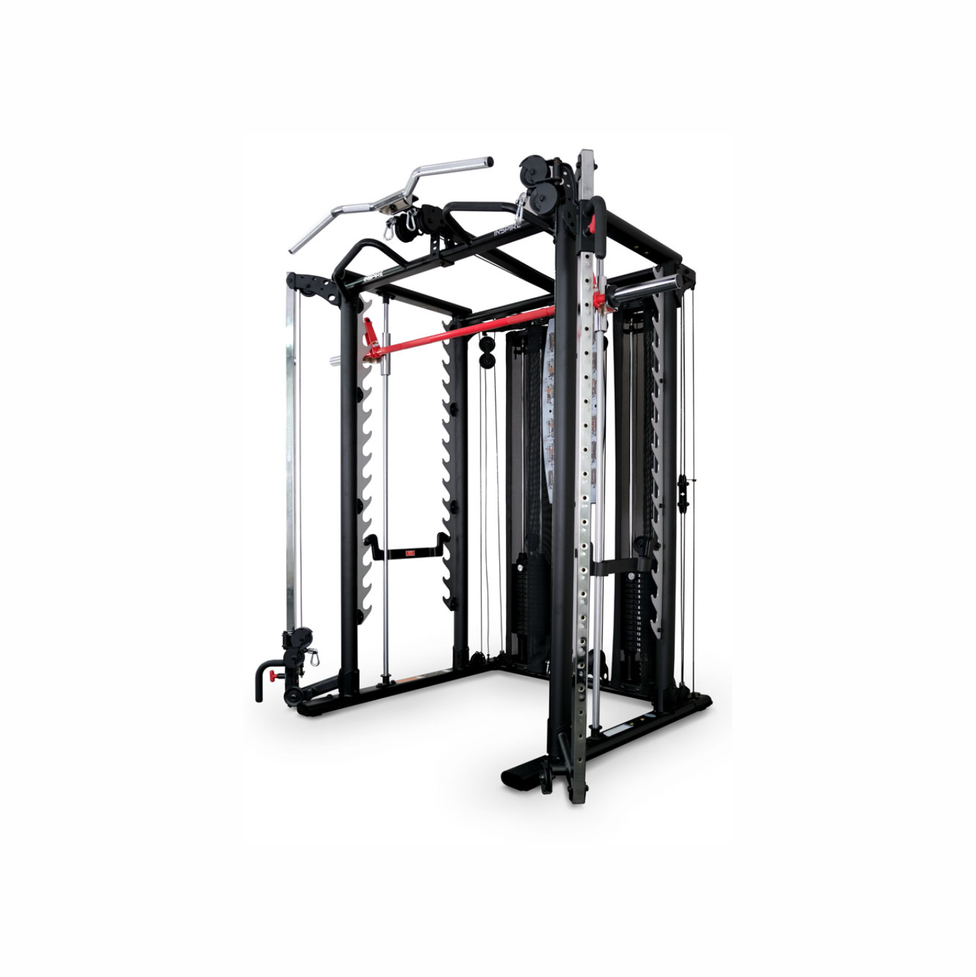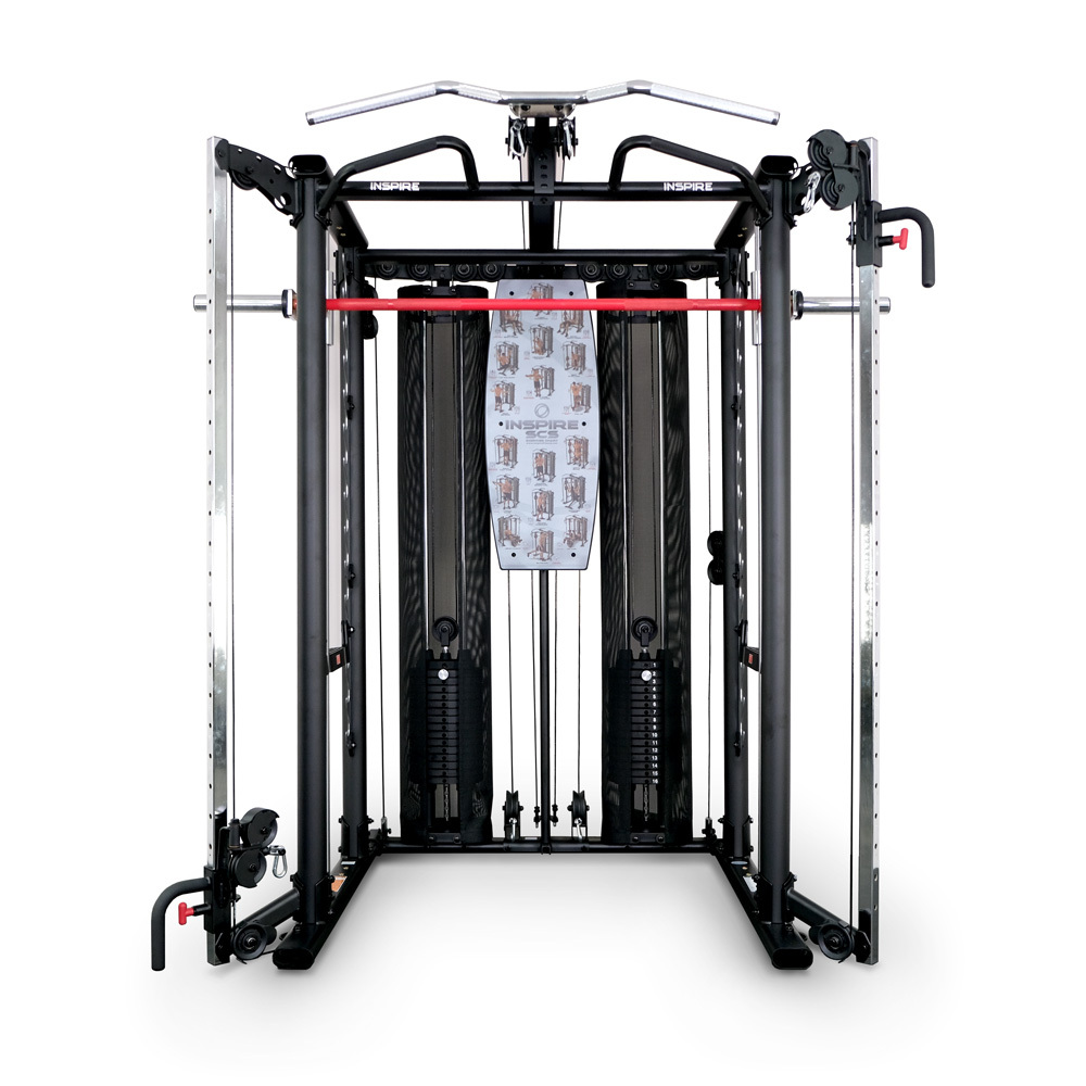 - Особенность SCS — независимые тяговые блоки. Два весовых стека по 75 килограммов фиксируются магнитным штифтом. Двойной шкив позволяет принимать 32 разных положения для проработки всех мышечных зон.