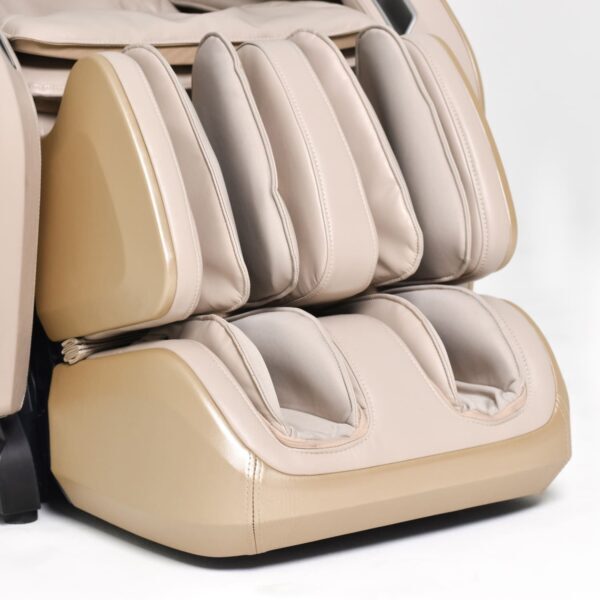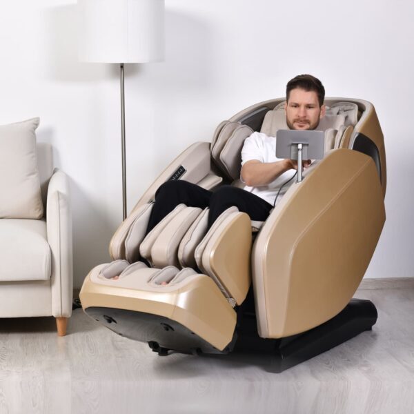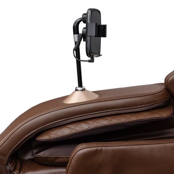Отличительной особенностью кресла является оснащение акустической системой и возможность подключения Bluetooth. Одна из автоматических программ – ритмичный массаж позволяет массажироваться в такт подобранной мелодии. Подставка для ног может удлиняться на 19 см, поэтому кресло подойдёт для любого роста.