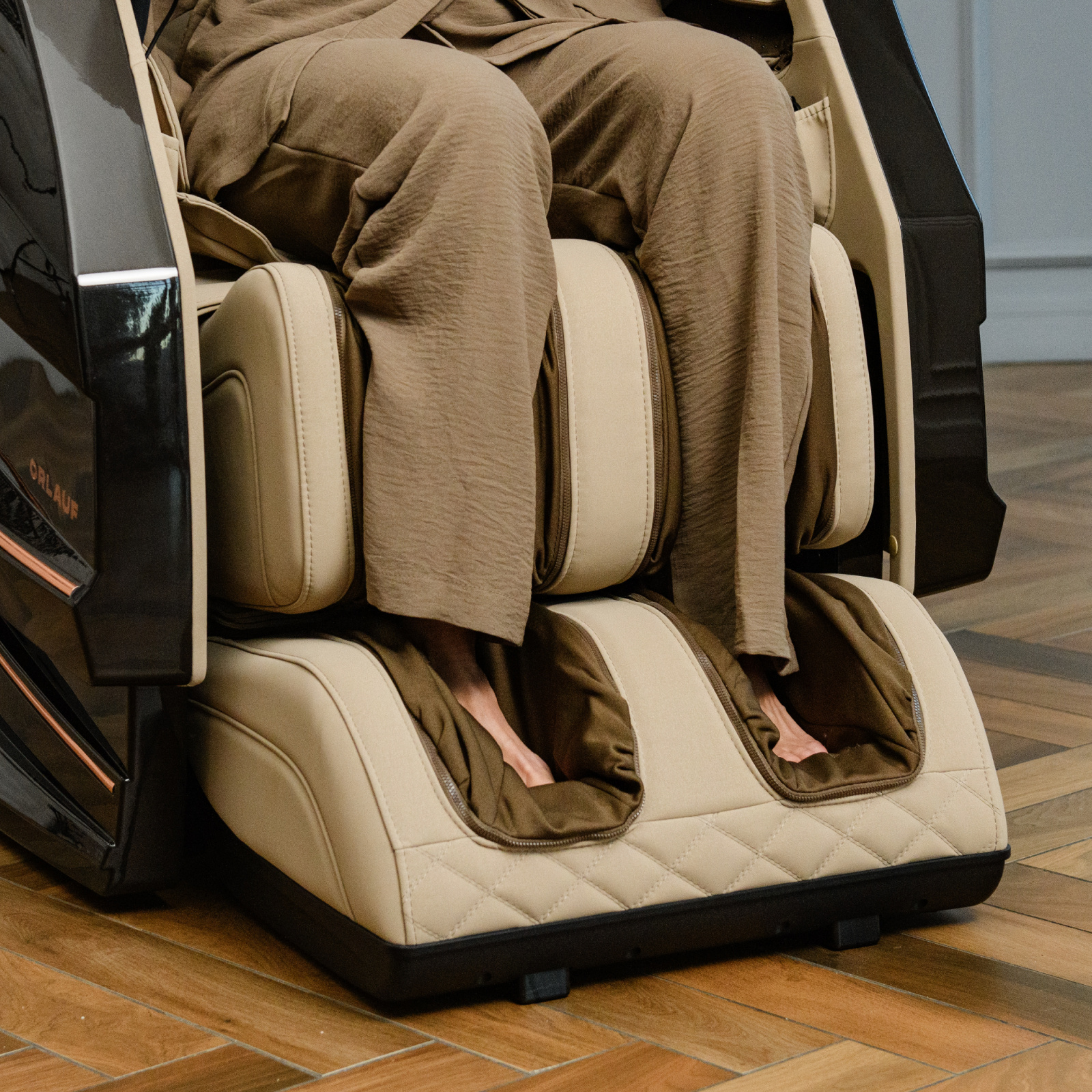 Сочетание 116 воздушных подушек и трех рядов роликов в области стоп обеспечивает всесторонний массаж ключевых зон: шеи, плеч, рук, спины, поясницы, ягодиц, бедер, икр и ступней.
