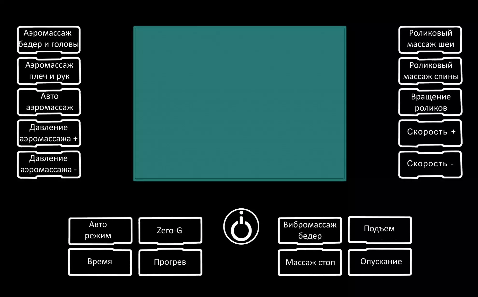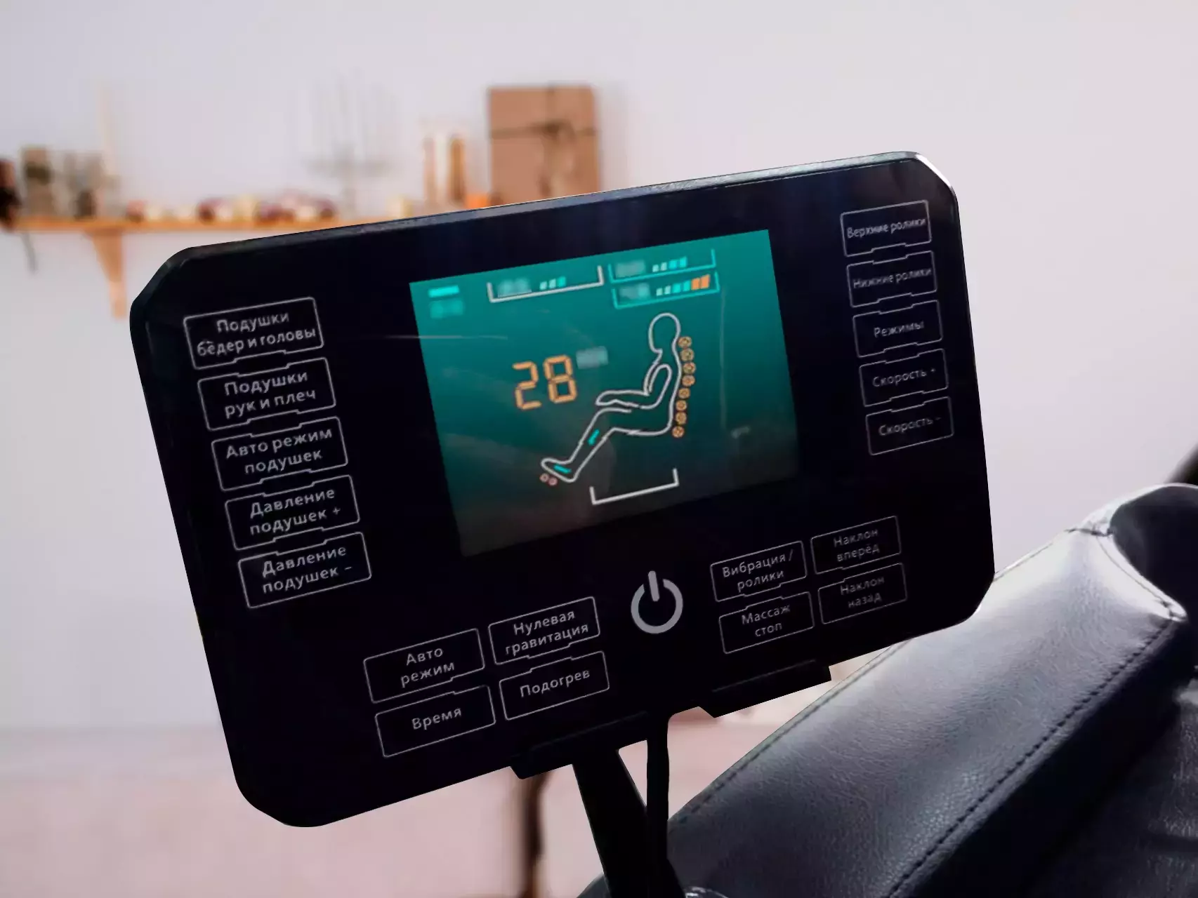 Еще одно преимущество модели — русифицированный сенсорный планшет управления. В нем креслом легко разобраться, а на яркий дисплей выводятся все манипуляции и выбранные режимы.