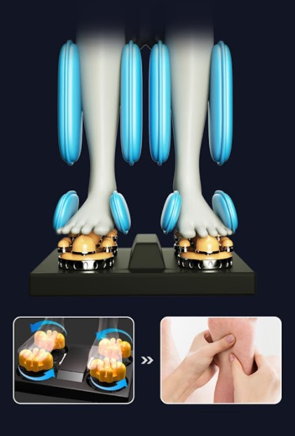 Большое внимание уделено массажу ног и стоп. Секция для стоп закрытого типа, благодаря чему ролики и подушки массируют ступню полностью — от пятки до пальцев.