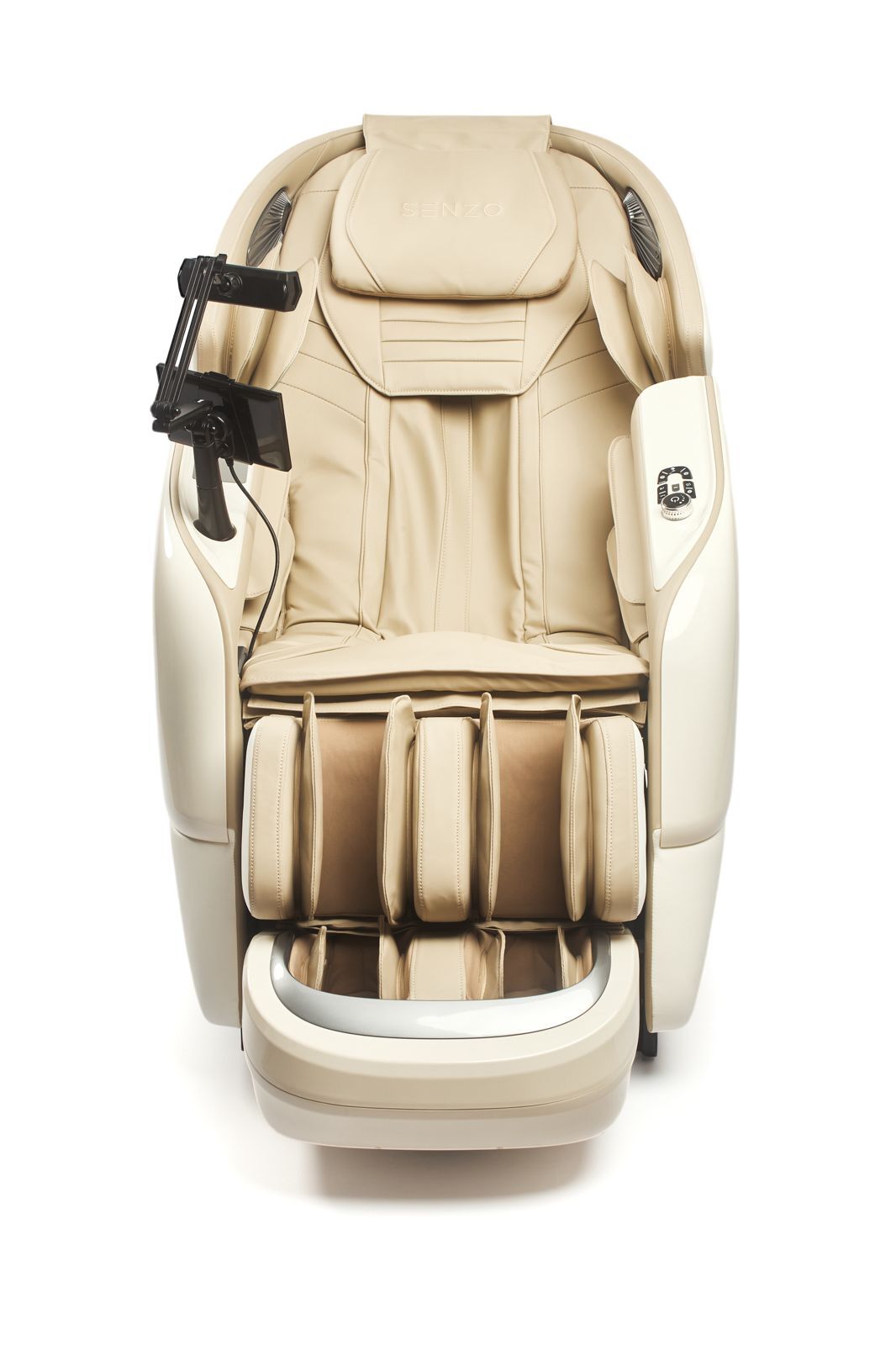 - В комплекте удобная подставка под телефон или планшет, которым можно управлять специальным джойстиком, встроенным в подлокотник, не отвлекаясь от массажа