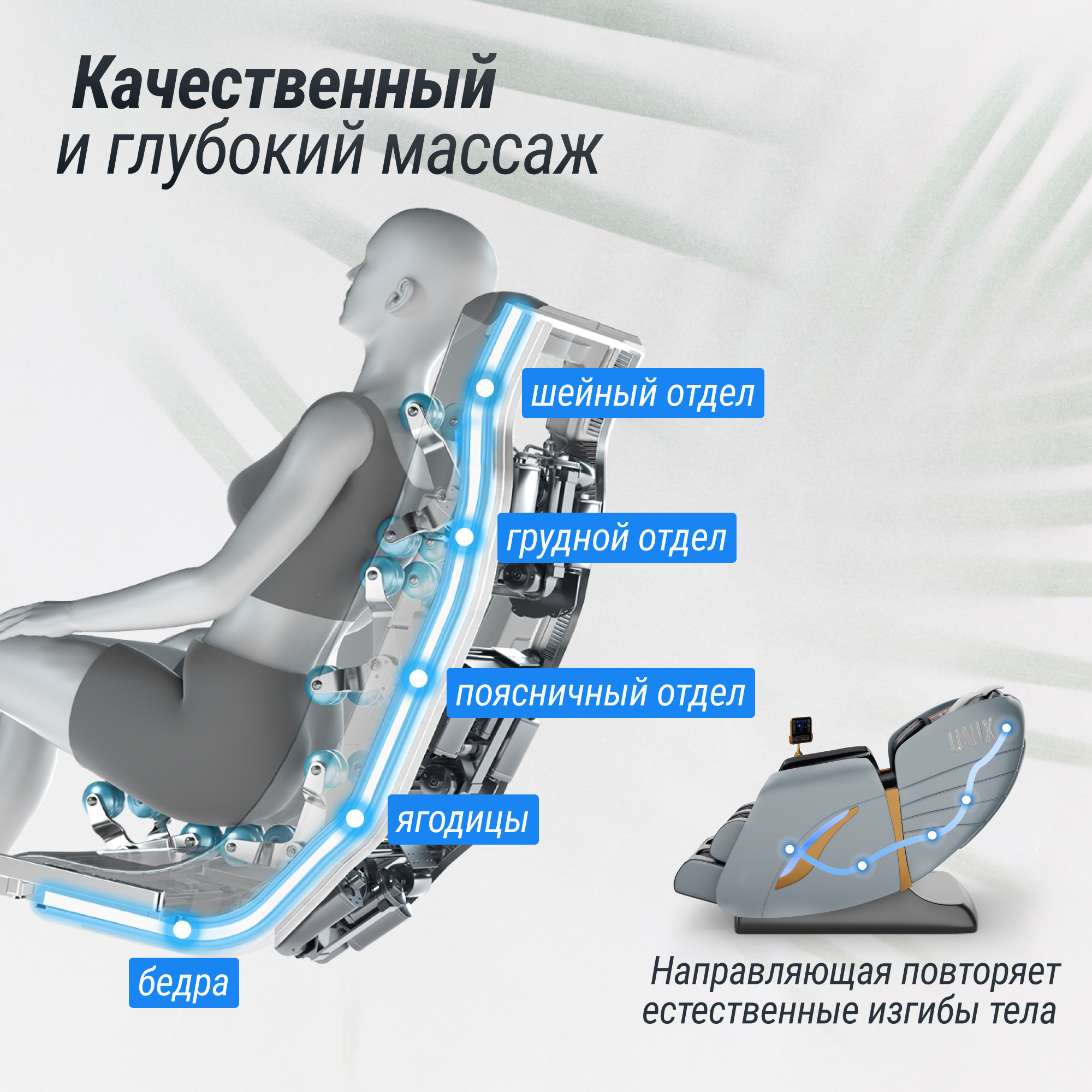 Инновационная система предлагает возможность автоматической настройки положения тела, а также обнаружения изгибов тела и массажных точек, что делает массаж более естественным и точным.