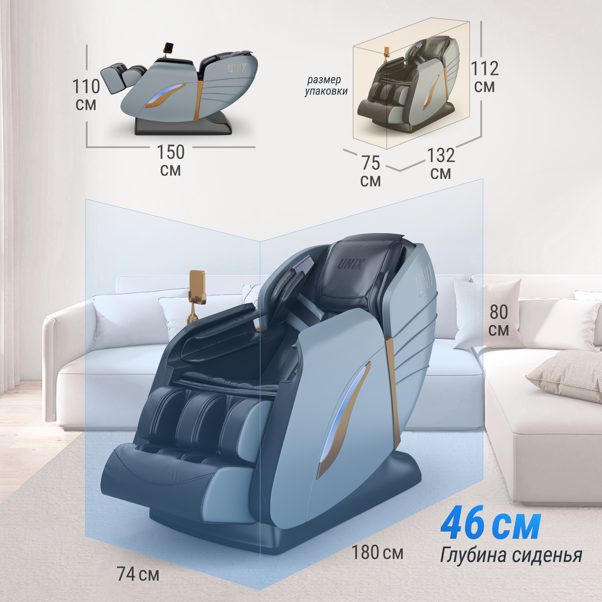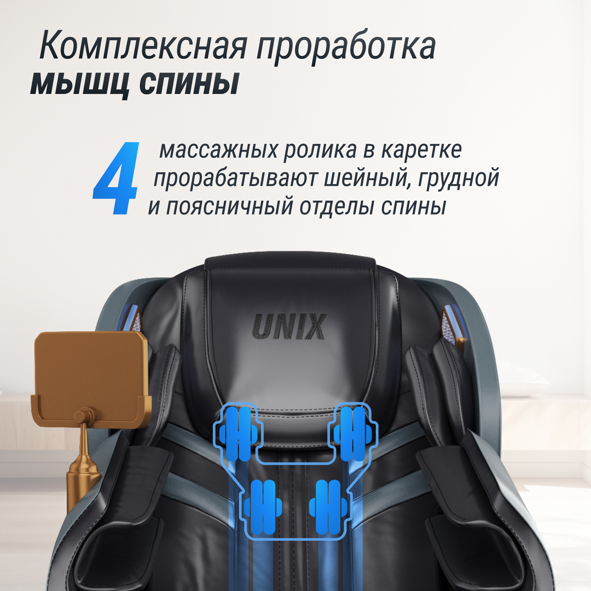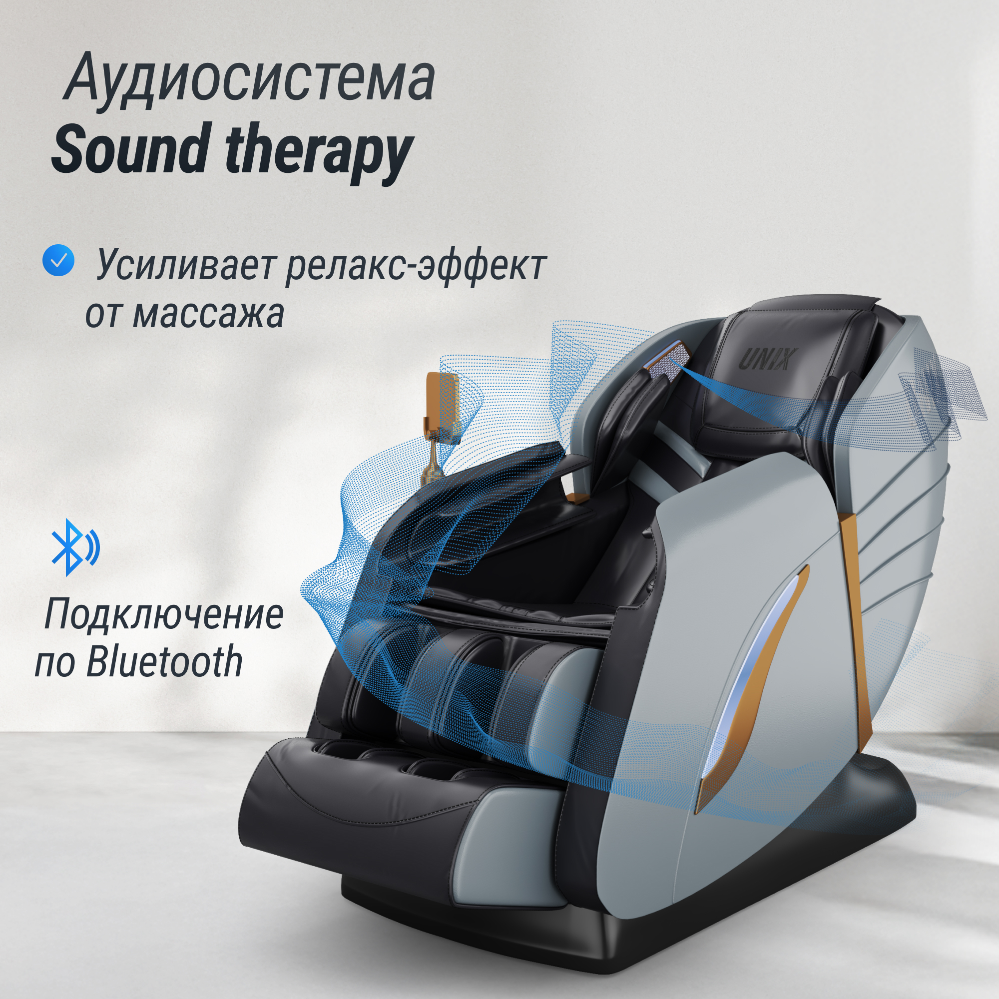 - Встроенные динамики позволят во время массажа слушать любимую музыку через Bluetooth со звуком Hi-Fi. Кресло позволяет синхронизировать вашу любимую музыку с массажным механизмом. Расслабьтесь под свою любимую музыку и получайте удовольствие с массажным креслом UNIX Med. Встроенная функция Bluetooth позволяет подключать ваше устройство и наслаждаться любимыми мелодиями или расслабляющими звуками природы во время массажа спины, ШВЗ (шейно-воротниковой зоны) или массажа ног. Создайте дома идеальную атмосферу для отдыха и восстановления сил!