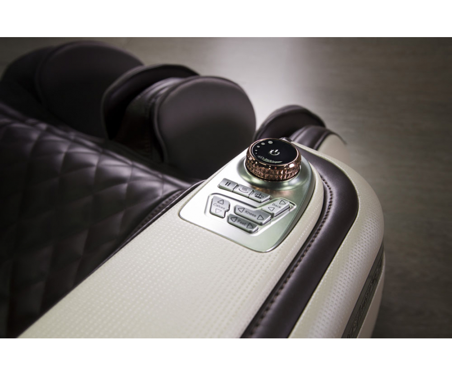 Опционально подставка для ног регулируется с помощью джойстика или пульта управления, что дает возможность промассировать и прогреть колени, а также зону голени.